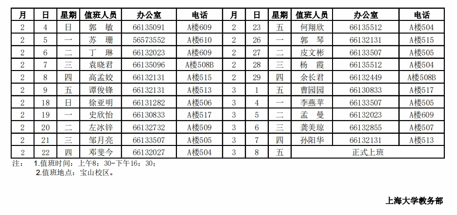 教务部2023-2024学年寒假值班表