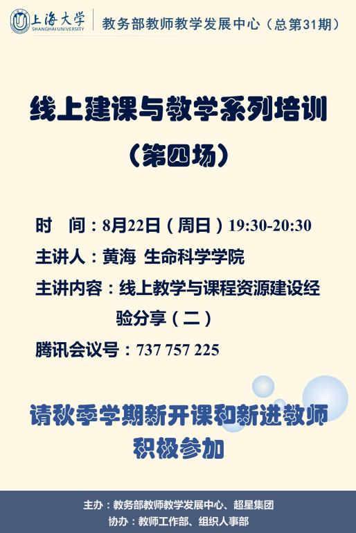 上一条:关于启动2021年上海大学教学成果奖申报工作的通知(教务部 【2021】26号) 下一条:关于公布2021年度上海大学“党史学习教育与课程相融合”首批示范课程建设项目的通知(教务部 【2021】25号)