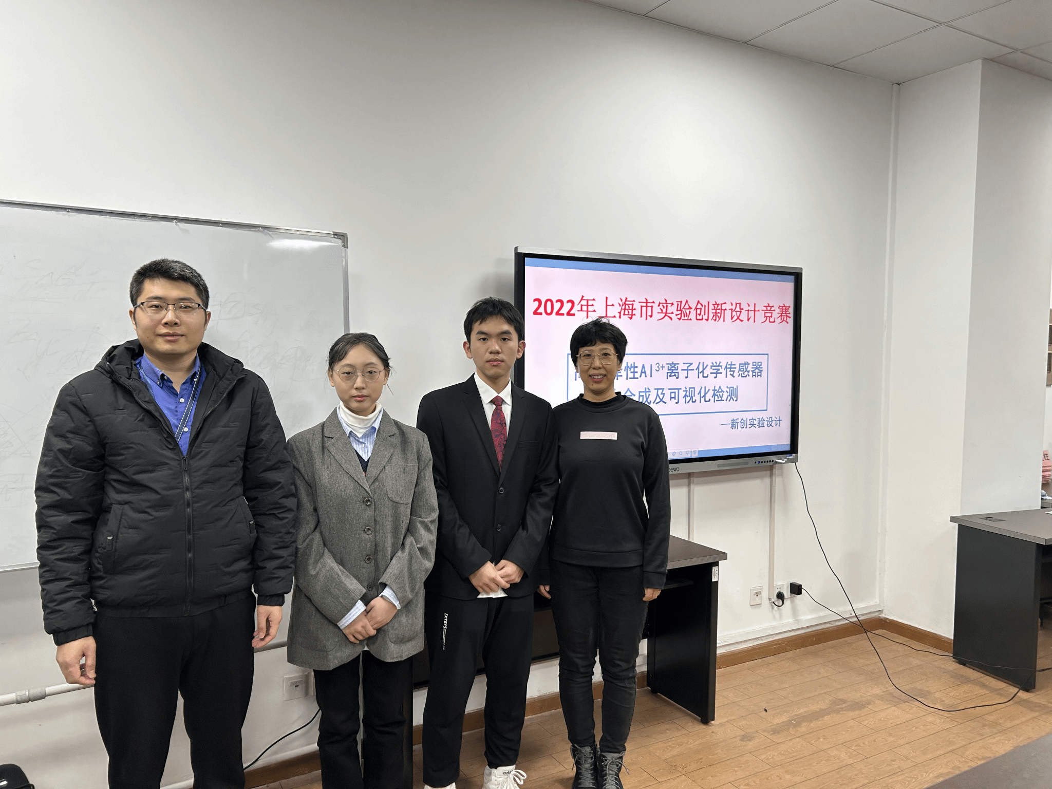 化学系应用化学专业20级学生白郅昂、李炎泽、张敏柔团队在赵永梅、王辉老师的指导下,设计的创新实验“高选择性铝离子化学传感器的合成及可视化”论文与实验视频通过专家初评,进入决赛,通过线上答辩与专家提问,荣获上海大学生化学实验创新设计决赛一等奖。
