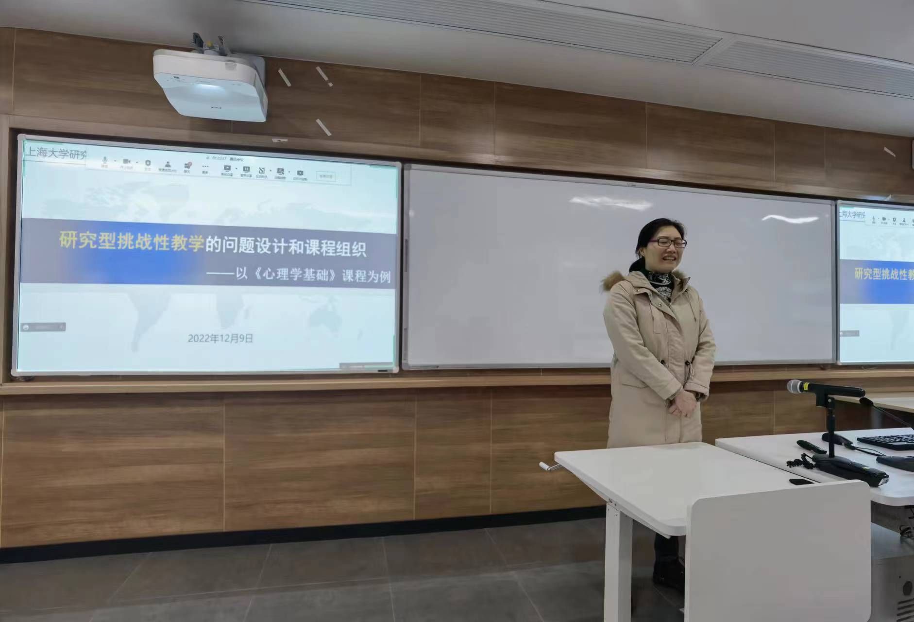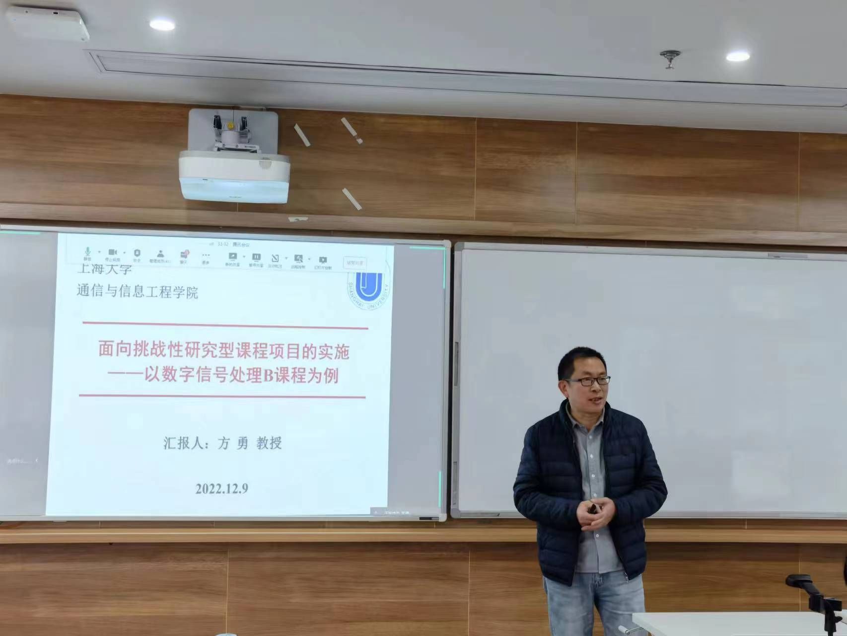 为落实立德树人根本任务,深入推进我校研究型挑战性课程的建设,推动我校课程教学质量全面提升,12月9日下午,“研究型挑战性教学研讨沙龙”(第五期)在宝山校区B424和线上腾讯会议同步召开。教务部常务副部长彭章友老师、副部长辛明军老师、建设处处长杨昕昕老师和教师发展中心副主任单娟老师、首批国家级一流课程负责人方勇老师和许科老师以及各个课程负责教师共70余人通过线上线下的方式参加研讨沙龙。沙龙由教务部建设处处长杨昕昕老师主持。