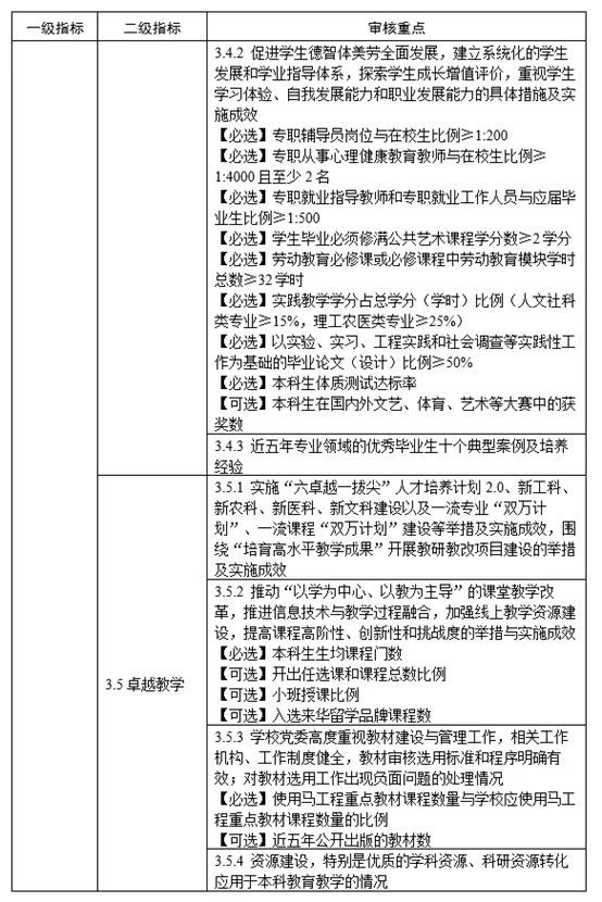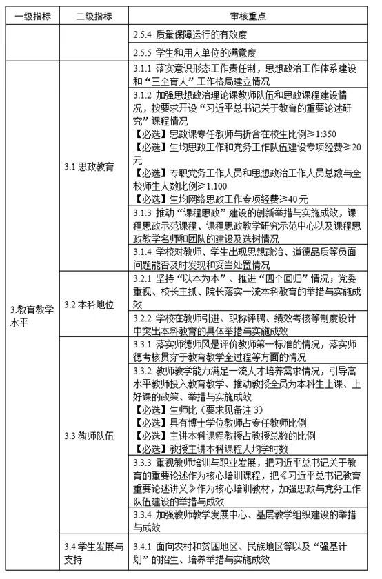 普通高等学校本科教育教学审核评估指标体系