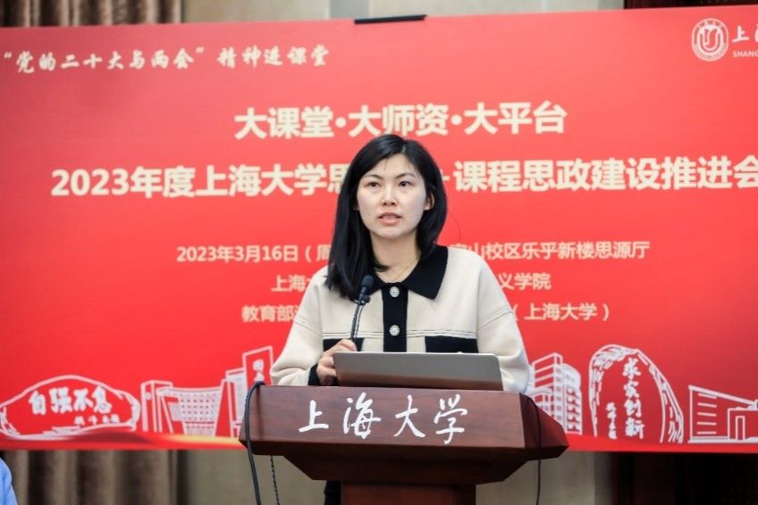 “向内深挖,向外拓展”“搭好四梁八柱,做好顶层设计”……马克思主义学院张彦青老师介绍上海大学推进“大思政课”的建设方案。