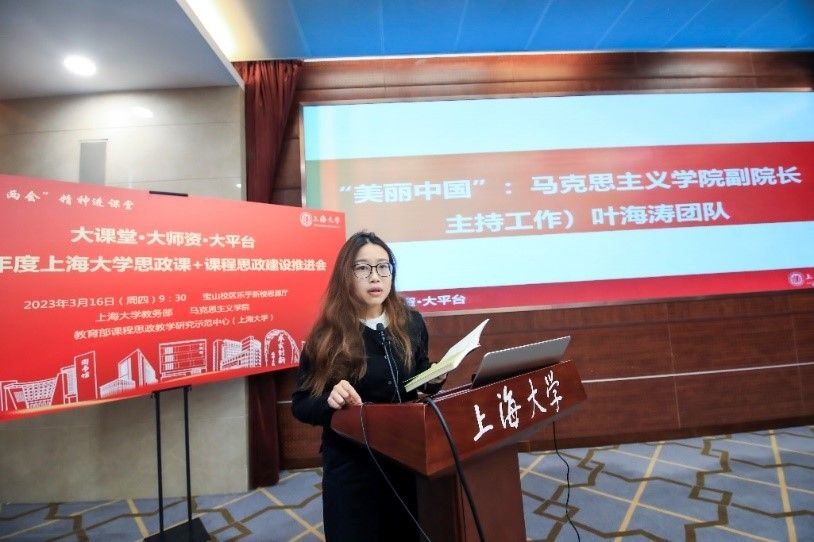 “‘美丽中国’以前瞻性视角解析生态文明建设的重要意义”“通过案例分析、理论讲解等形式将生态文明建设融入思想政治教育”“以问题导学式的方法,帮助学生回顾课程内容并引发课后思考”马克思主义学院张青子衿老师从教学理念和教学方法两方面讲述团队新开课‘美丽中国’的教学特色。