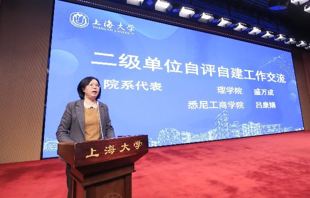 在接下来的院系自评自建交流环节,理学院党委书记盛万成和悉尼工商学院党委书记吕康娟代表二级单位作了工作交流。盛万成首先分享了学院对新一轮审核评估的思考以及下一步工作推进思路。吕康娟分享了悉尼工商学院在教育教学制度建设、人才培养等方面的改革探索与成效,表示学院将以审核评估为契机,继续深化本科教育教学改革,形成培养具有国际胜任力的实习实践、国际组织人才培养模式和创新创业人才培养模式。