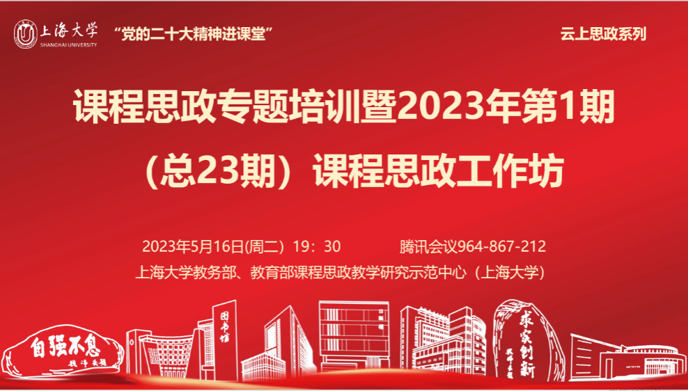 如何将党的二十大精神有机融入课程教学?如何切实做好课程思政优秀教学设计?如何进一步落实教育部《高等学校课程思政建设指导纲要》要求?2023年5月16日晚,教育部课程思政教学研究示范中心(上海大学)举办线上课程思政专题培训暨今年首期(总23期)课程思政工作坊。此次工作坊采取“云上思政”形式,聚焦主题教育实地调研发现的真实问题,面向各院系教师开展课程思政教学设计(大纲、案例等)专项培训。教务部副部长顾晓英担任主持,武汉大学课程思政中心副主任唐飞副教授受邀作辅导,来自各院系的教学院长、教学秘书、教学系主任、教研室负责人、课程负责人五十余位教师与会。