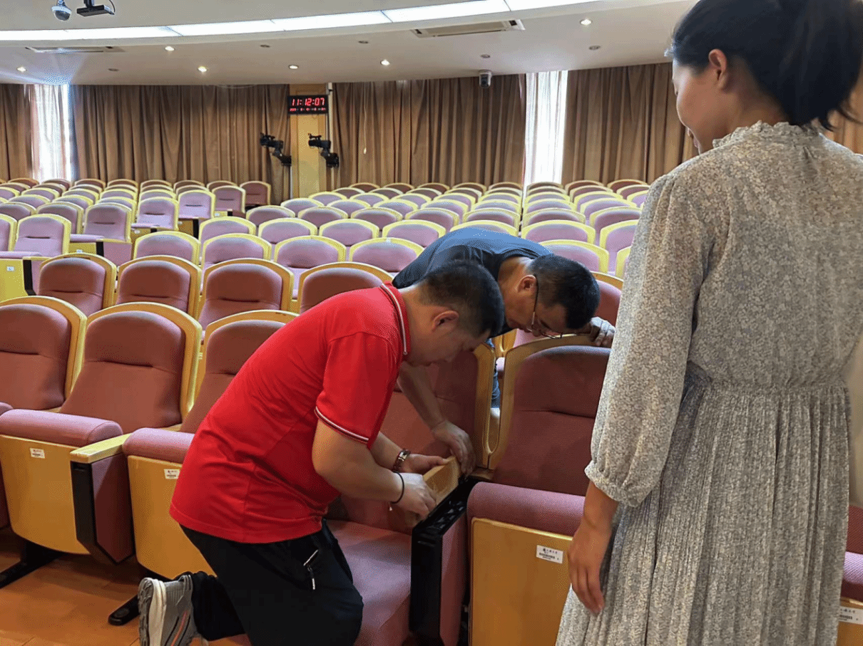 在巡查中,顾晓英副部长提议将J102和J103两个讲堂进行座椅改造升级,得到了对外联络处处长、校友会办公室主任陈然和对外联络处办公室黄浩老师的大力支持,在现教中心周璘老师配合下,J楼椅背套升级方案于8月25日最终定稿并下工厂批量制作。8月27日,J102与J103椅背套更新完毕,以焕然一新的面貌出现在第二天的课堂上。