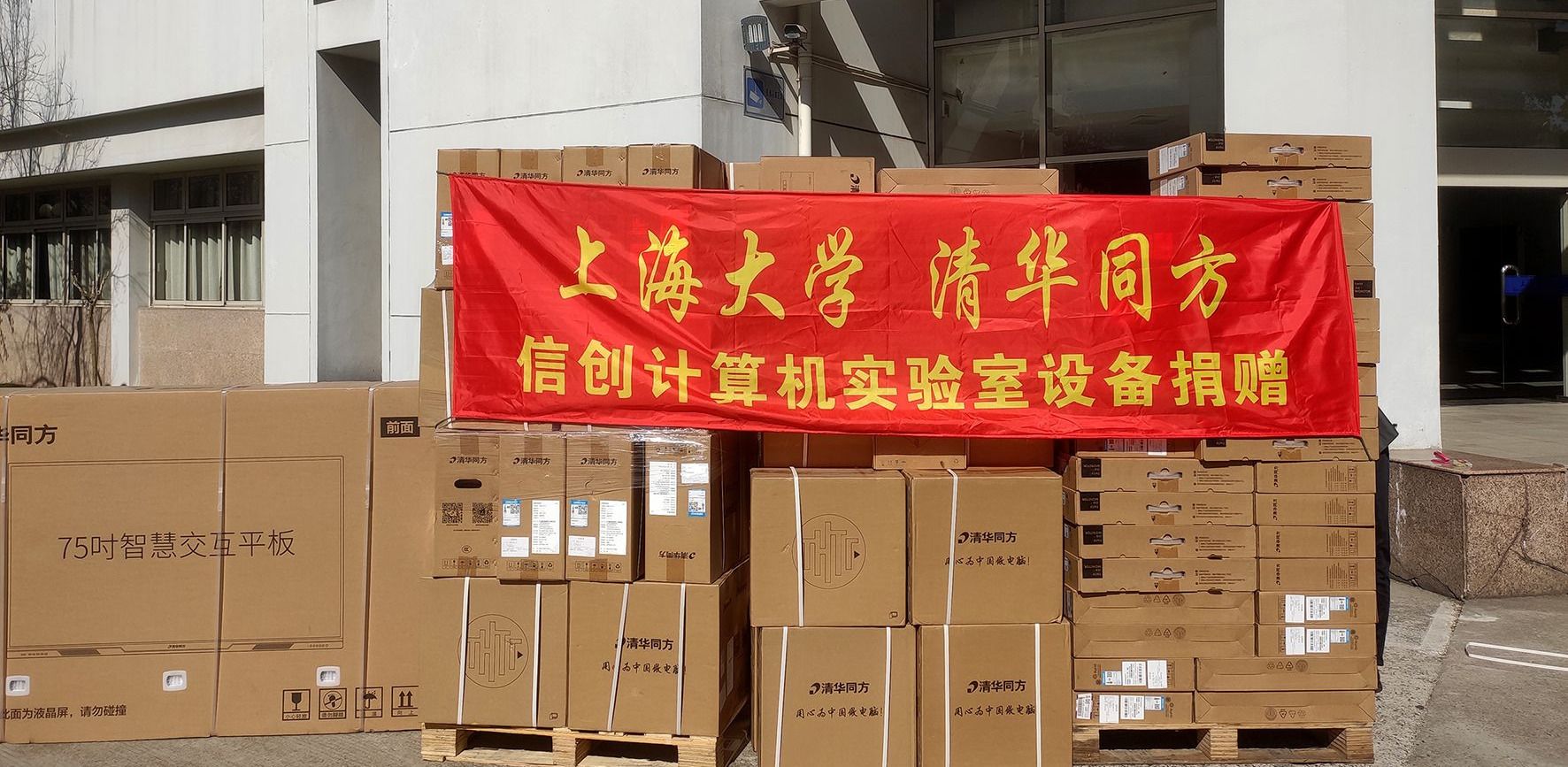 该项目中50余套信创计算机和软件由同方计算机有限公司牵头兆芯处理器、中科方德操作系统、WPS办公软件、OSV云桌面、NEWCLASS智慧语音教学系统等公司捐赠,实验室环境改善费用由校基金会组织上海大学93级校友捐赠。