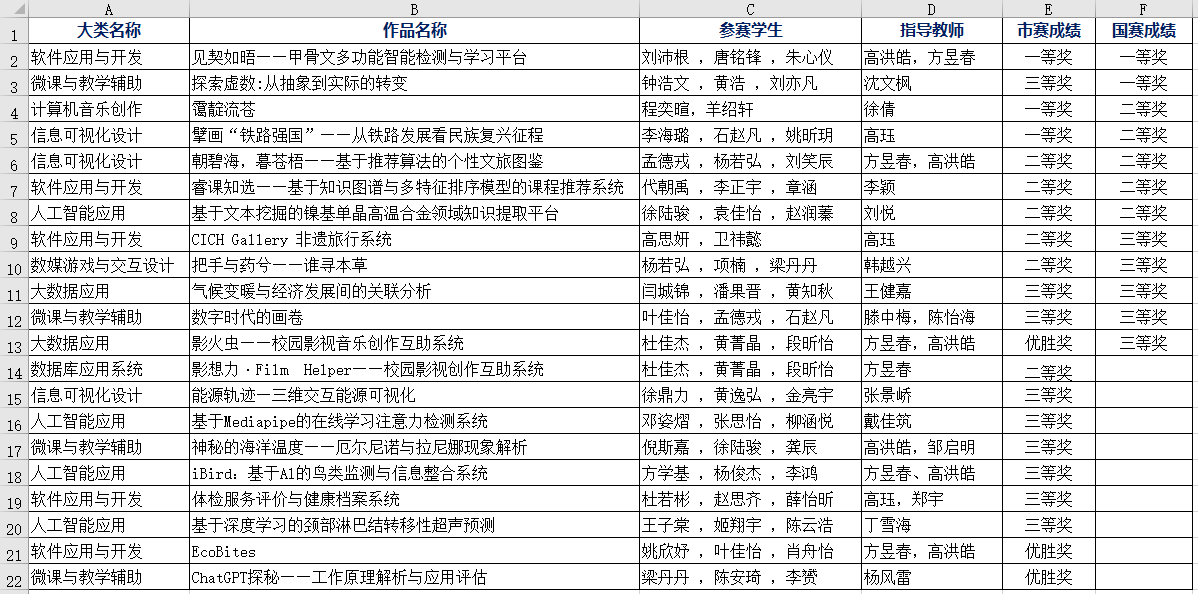 计算机学院有两支参赛队伍在比赛中脱颖而出,(《见契如晤——甲骨文多功能智能检测与学习平台》,组员:刘沛根、唐铭锋、朱心仪,指导老师:高洪皓、方昱春)和(《探索虚数:从抽象到实际的转变》,组员:钟浩文、黄浩、刘亦凡,指导老师:沈文枫),分别在软件应用与开发赛道和微课与教学辅助赛道中取得了全国一等奖的优异成绩。