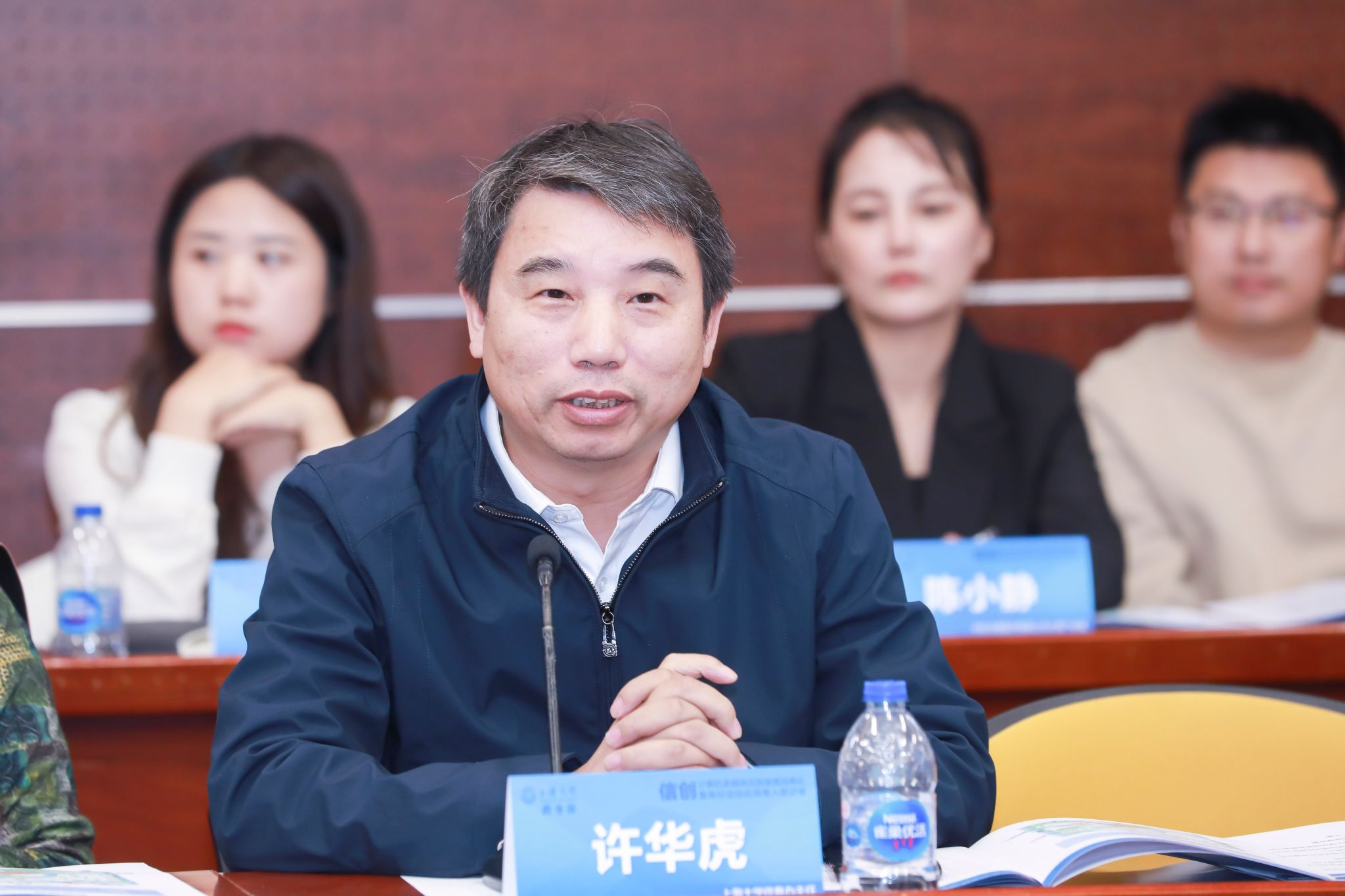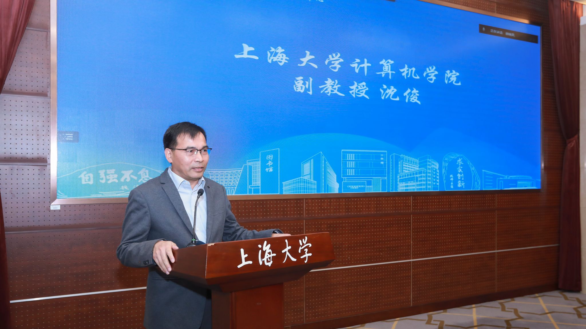 上海大学教务部现教中心主任陈章进介绍了现教中心的概况。现教中心现隶属于教务部,服务管辖学校440间公共教室,36间公共计算机实验室。陈主任接下来介绍了智慧共享实验室,现教中心运营的各大系统、平台等。陈主任还重点介绍了信创计算机多媒体实验室。从项目立项、设备进校、施工建设、试运行直至今天平稳运行,为师生服务。他指出,信创计算机多媒体实验室的建成是现教中心响应国家推动信息技术应用创新产业发展的要求、探索信创产品在高校教学和科研中的定位与发展方向、增强信创产品在高校师生中认知度的一个有益尝试。