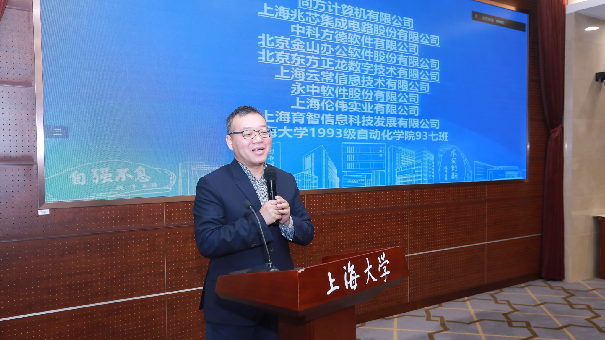 会上,各企业联合出资成立“上海大学信创发展教育创新基金”。上海大学校友会(基金会)主任陈然和上海大学宣传部副部长、融媒体中心主任吴铭为各捐赠企业颁发纪念书法作品。书法作品由书法家、上海大学荣休教师徐步群先生创作。