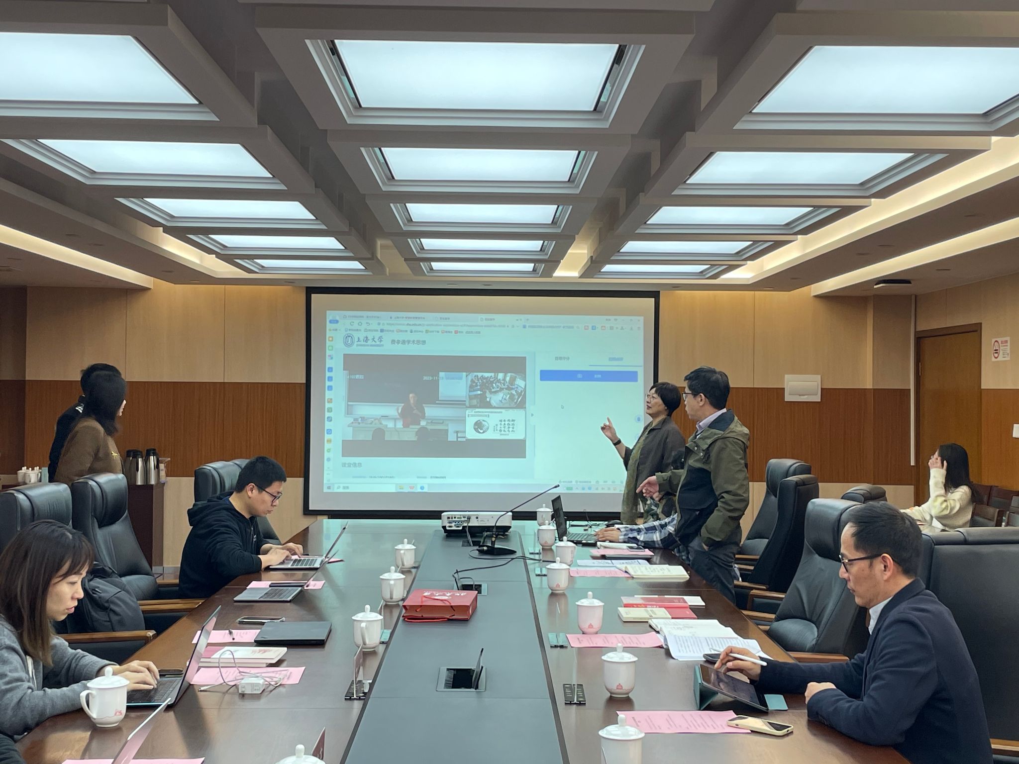顾晓英副部长向来访客人介绍了上海大学校史及现今发展情况,重点介绍了上海大学思政课改革创新情况,“大思政课”建设情况、思政课教师队伍建设、课程思政建设特色举措、课程思政教学研究中心机构设置、工作创新思路与举措。