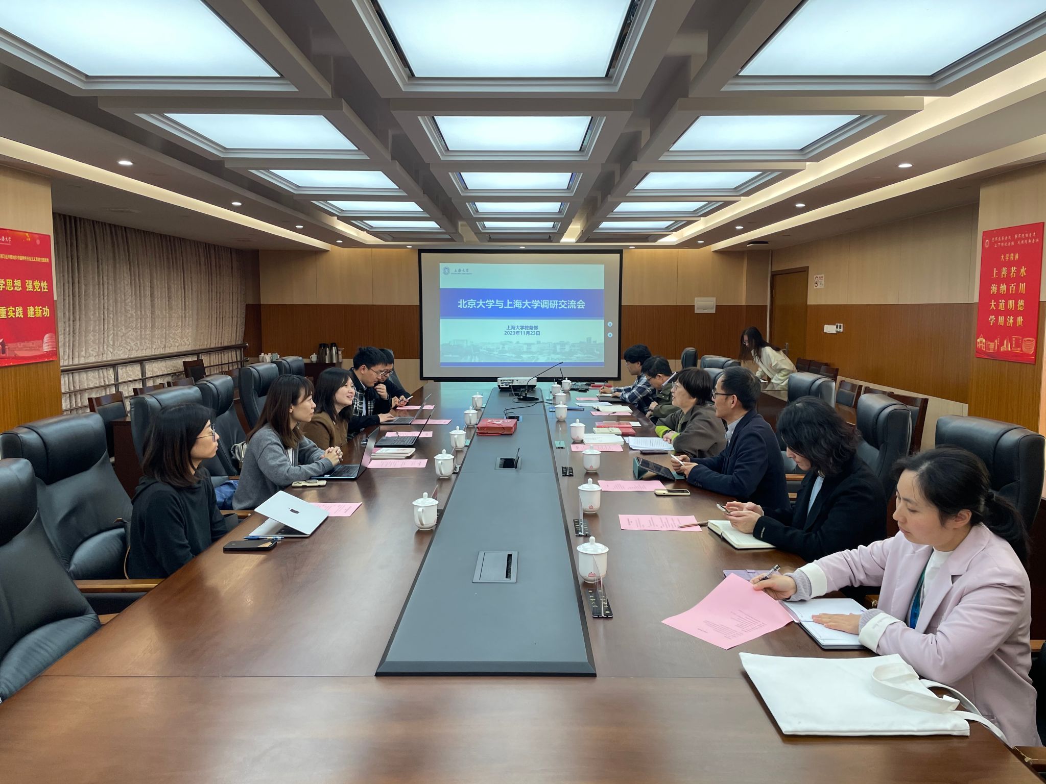 “北有五四时期的北大,南有五卅时期的上大”。虽相距千里,却源远流长。期待两校在今后人才培养各条线工作中继续保持密切联系,共同进步,共同发展。