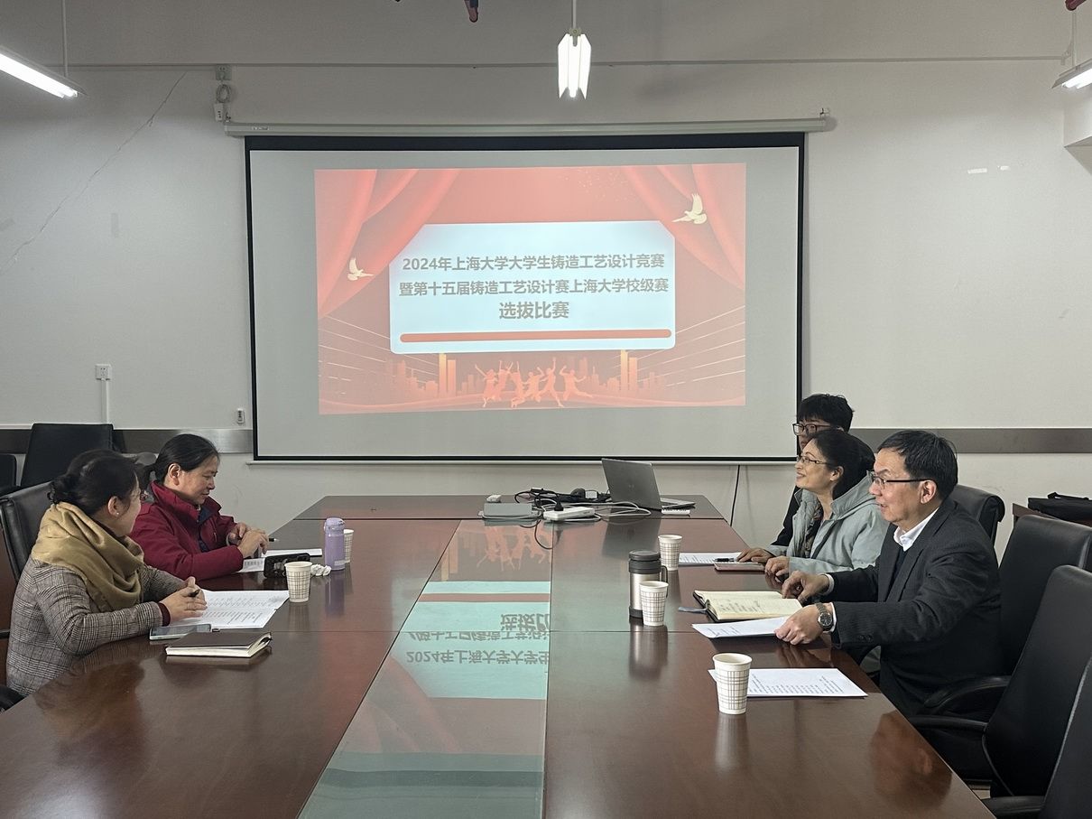 2024年上海大学大学生铸造工艺设计竞赛暨第十五届铸造工艺设计赛上海大学校级赛选拔比赛于2024年1月12日下午在宝山校区东区8号楼508会议室顺利举行。由中国机械工程学会主办,中国机械工程学会铸造分会承办的“中国大学生机械工程创新创意大赛:铸造工艺设计赛”旨在为材料成型及控制工程等相关专业在校学生提供社会实践平台,鼓励学生主动跟踪科技发展、学习铸造专业知识,提高铸造工艺设计和操作技能,提升科技创新与工程实践能力,为铸造行业培养优秀专业人才。从2009年开始,上海大学的参赛选手在材料学院杨弋涛教授的指导下已经连续14届参加全国比赛,到2023年为止获奖总数48项,总人数149人次,其中4次获得全国比赛一等奖。自从2023年11月启动本届赛事以来,黎军顽老师和金曼老师多次组织答疑活动,帮助参赛选手们答疑解惑,参赛同学们认真对待、积极努力,各参赛小组利用课余时间认真查阅理论知识,相互配合、分工合作进行画图设计以及铸造方案的持续改进,最终共有11组35人——本科生5组(18人)、研究生6组(17人)入围本次选拔赛答辩环节,本次答辩评审会由金曼老师主持,杨弋涛老师、朱丽慧老师、黎军顽老师和陈萌老师担任本届选拔赛评委。