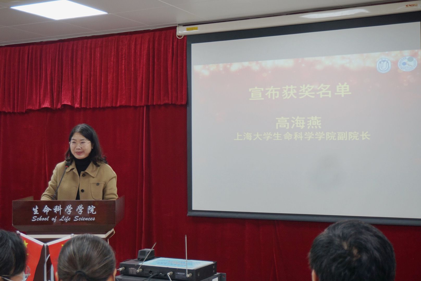 最后,生命科学学院副院长高海燕老师宣读了本次竞赛的获奖名单,由领导与嘉宾为各位获奖同学颁发证书和奖品,师生合影留念。