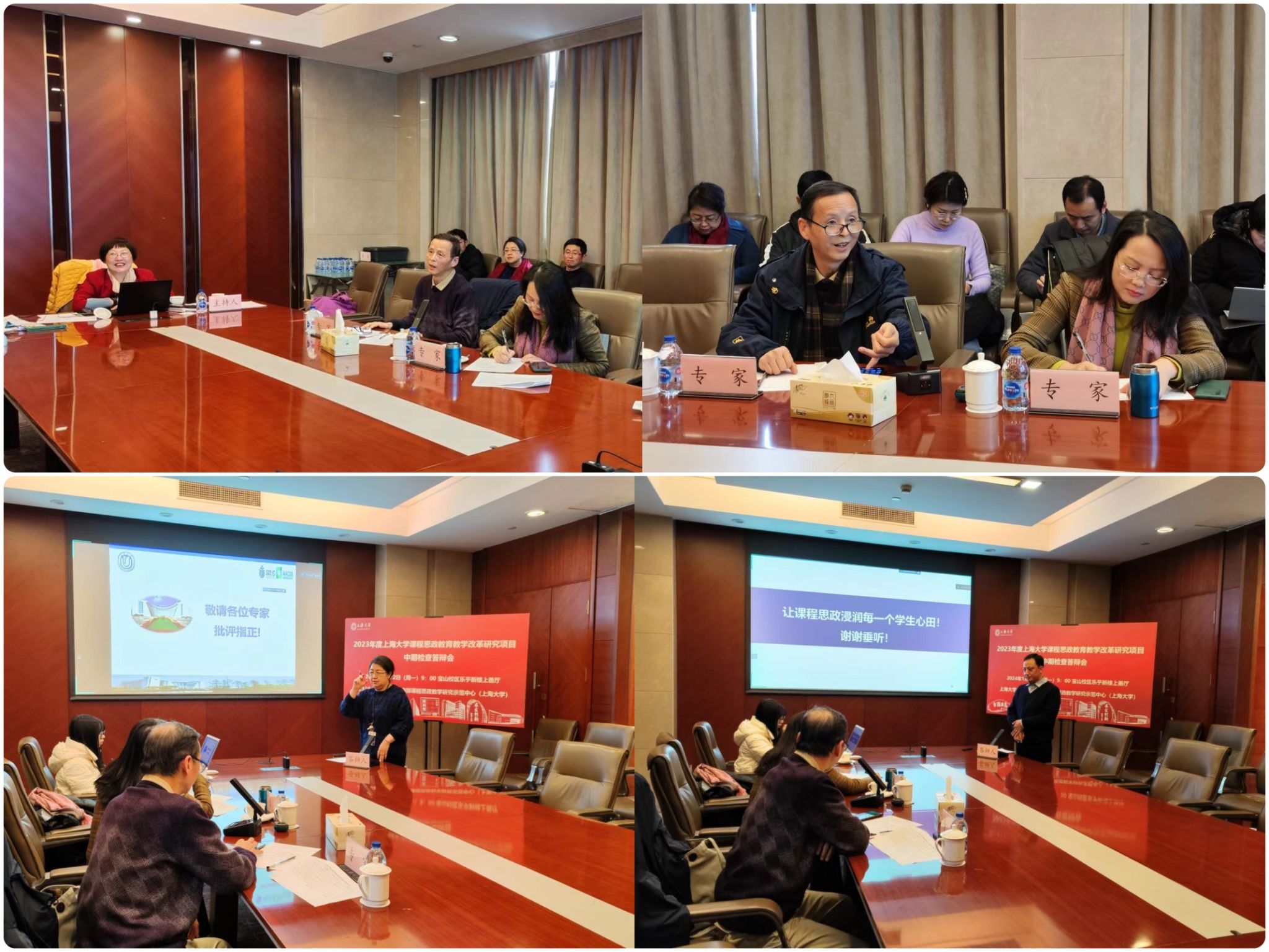 2024年1月22日上午9点,2023年度上海大学课程思政教改项目中期检查答辩会在宝山校区举办。校课程思政教学研究中心特聘专家、复旦大学高等教育研究所熊庆年教授和九三学社上海市委副主委、上海高校思政课教学名师李国娟教授担任评委。上海大学教务部副部长、课程思政教学研究中心负责人顾晓英主持会议。