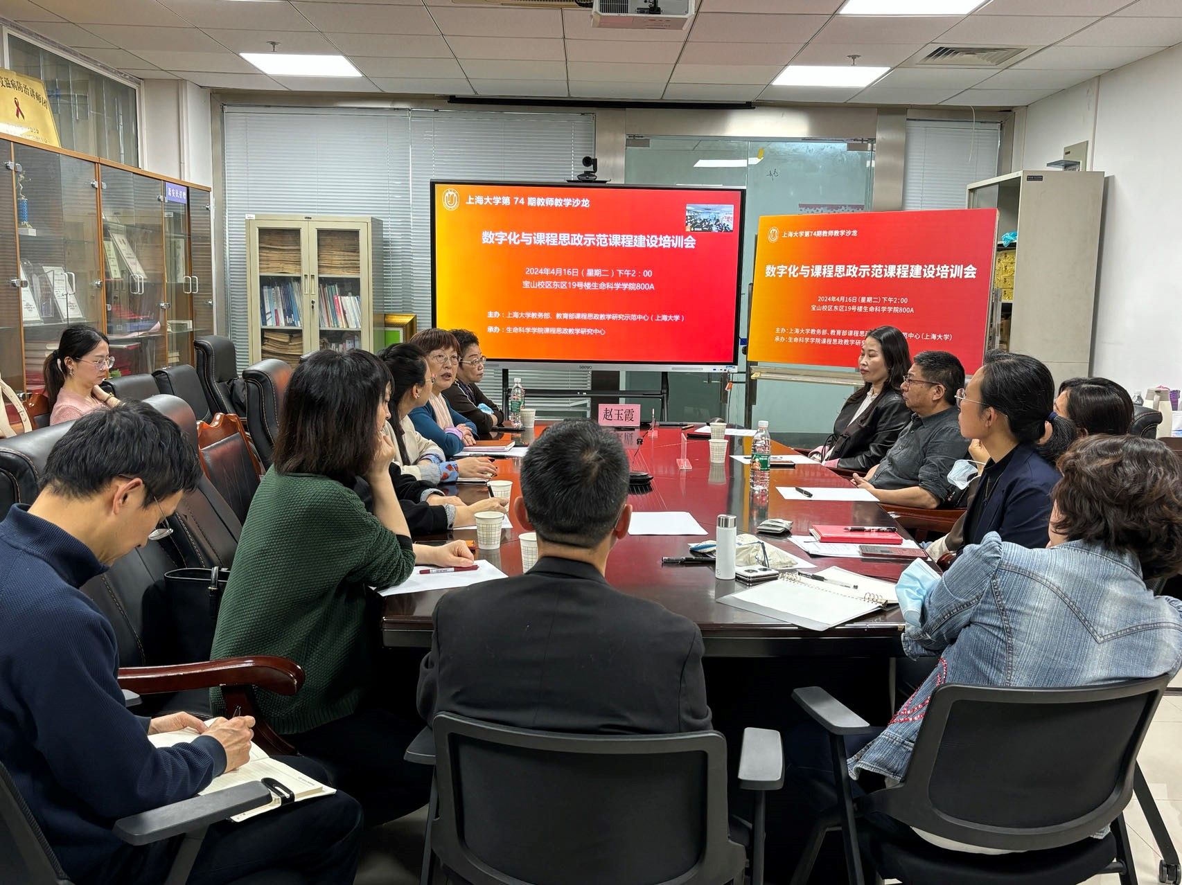 2024年4月16日,上海大学在宝山校区东区19号楼生命科学学院800A召开数字化与课程思政示范课程建设培训会暨上海大学第74期教师教学沙龙。会议由上海大学教务部、教育部课程思政教学研究示范中心(上海大学)主办,生命科学学院课程思政教学研究中心承办。上海大学教务部副部长、教育部课程思政教学研究示范中心(上海大学)负责人顾晓英教授担任主持。超星集团教学设计总监、首届国家级职业教育在线精品课程评审专家、国家智慧教育平台资源审核专家赵玉霞,音乐学院副教授纪晔晔,环境与化学工程学院副教授陆永生担任嘉宾。来自法学院、管理学院、继续教育学院、上海美术学院、生命科学学院等20多名教师线上线下参与会议。