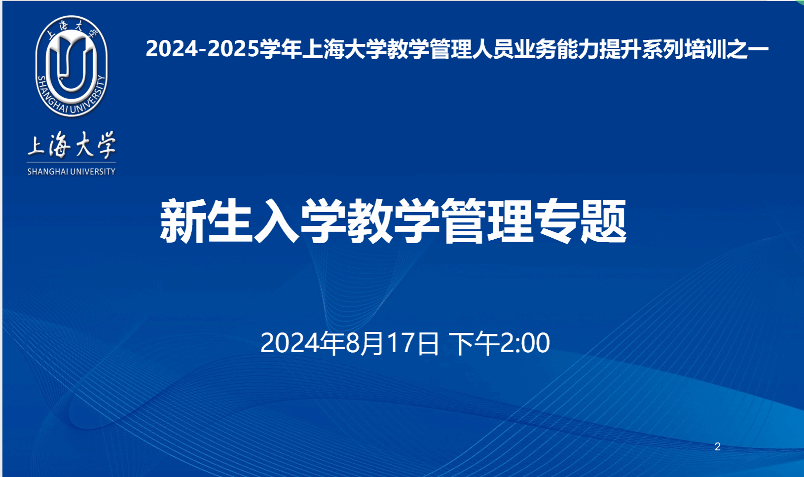 2024年8月17日下午2点,教务部组织举办了2024-2025学年上海大学教学管理人员业务能力提升系列培训之“新生入学教学管理”专场。学生工作办公室主任、本科生书院管理中心主任孟祥栋,本科生书院管理中心副主任佟丽宁、教务部教学运行处处长袁晓君,以及全校各学院教学院长、学工书记、教学秘书、辅导员,以及教务部运行处全体老师和建设处部分老师,共150余人线上参加。教务部副部长顾晓英主持培训会。