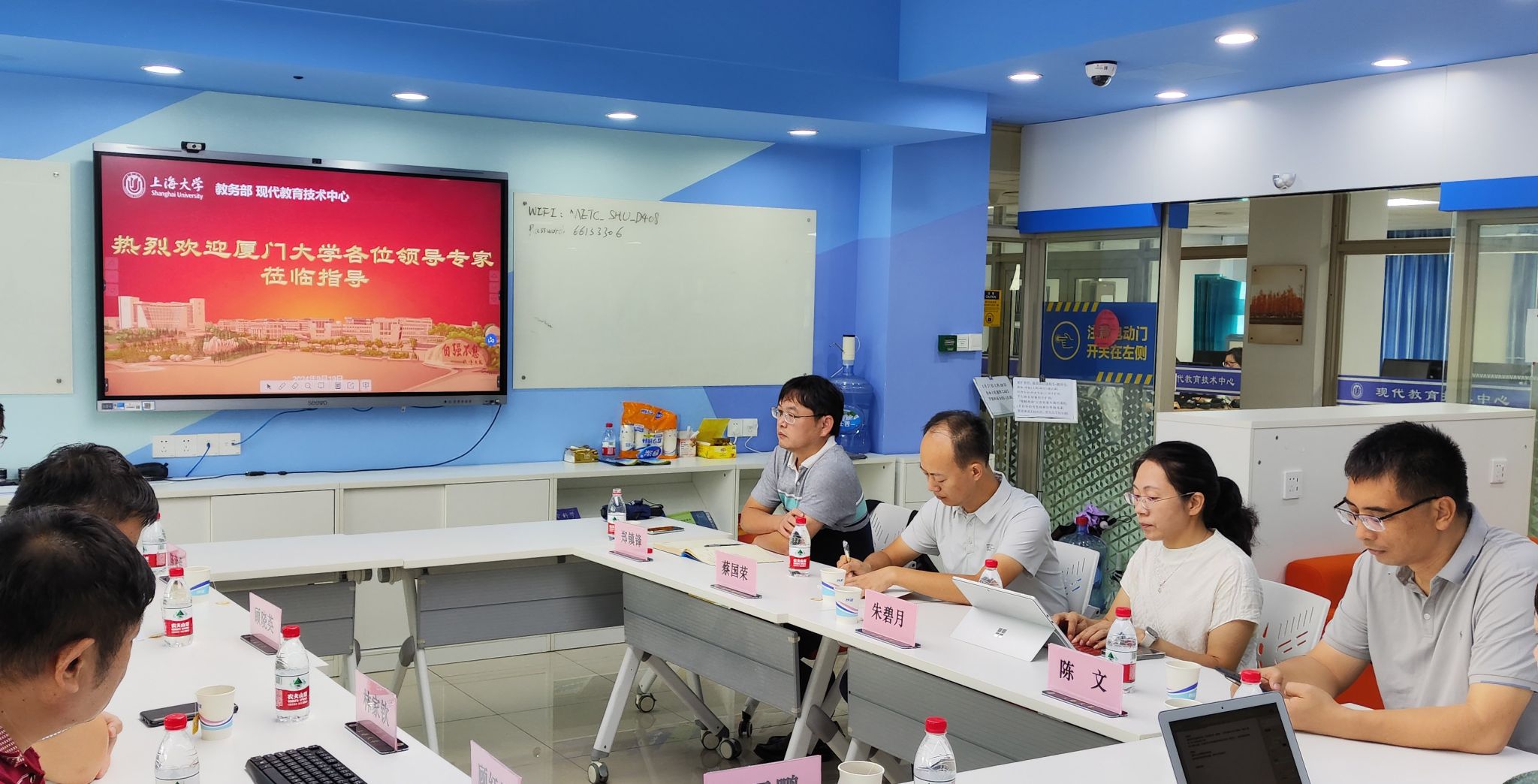 研讨会在宝山校区D408多功能实验室进行,厦门大学现代教育技术与实训中心副主任郑镇锋、高级工程师陈文、工程师蔡国荣和工程师朱碧月,上海大学教务部副部长顾晓英、房屋资产管理处副处长林家钦、现教中心主任陈章进、智慧共享计算机实验室负责人单子鹏、多媒体教室负责人顾红兵等出席了会议。双方就校园公共空间(公共自习区/休读区)设计、如何用技术手段提升自习环境,促进教学改革、共享空间规划与设置、资源配置、人员管理、技术支持、管理平台等问题进行了深入交流和探讨。