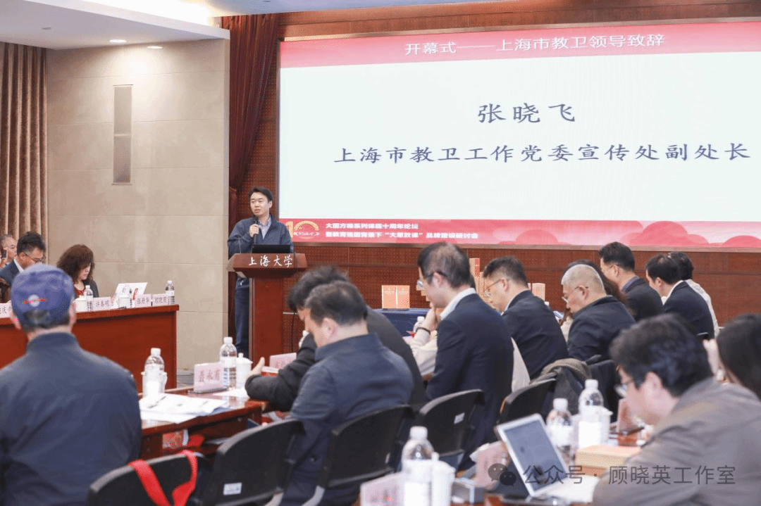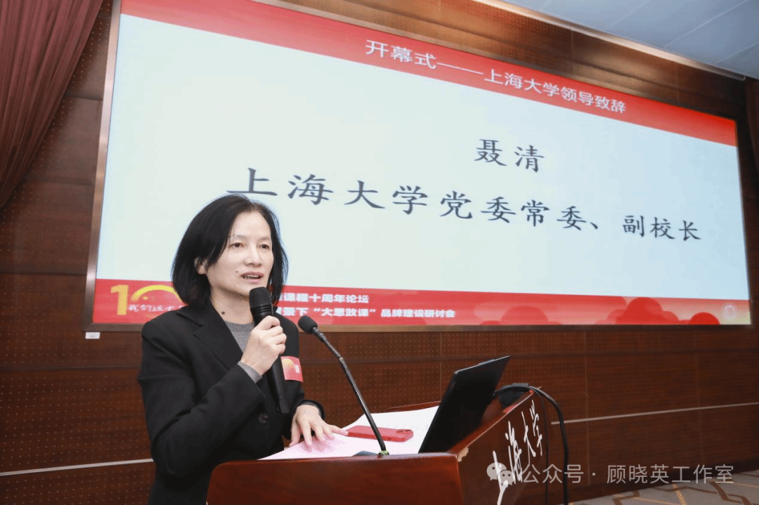 十年,上海大学大国方略以自己的为新时代开大课程之路,有力地回答了一个时代之问:“创新思政课程”到底该如何建设?为纪念“大国方略”课程开课十周年,11月18日上午,上海大学在宝山校区乐乎新楼思源厅举办十周年论坛暨教育强国背景下“大思政课”品牌建设研讨会。本次会议得到上海市思政选修课教学指导委员会指导,由上海大学主办,教务部、马克思主义学院、上海大学出版社承办,教育部课程思政教学研究示范中心(上海大学)、顾晓英工作室协办。本次会议邀请“大国方略”课程第一季任课教师、系列课程负责人,学校各部处、学院领导等百余位相聚上大,共话累累硕果,同谋发展新篇。