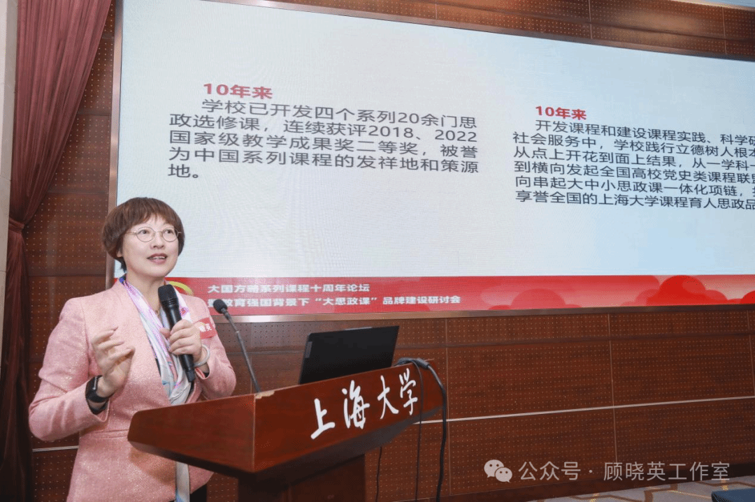 11月1日,大国方略课程负责人、原上海大学党委副书记忻平教授发来微信。他指出,“这是那么多老师共同希望和共同努力结果,集中了大家的智慧。顾晓英和顾骏老师是其中最为杰出最为优秀的代表。顾晓英工作室带领上大十年来持续探索创新思政课和课程思政的路子,有很多新鲜经验可以总结。我们有信心有决心走好自己的路!”