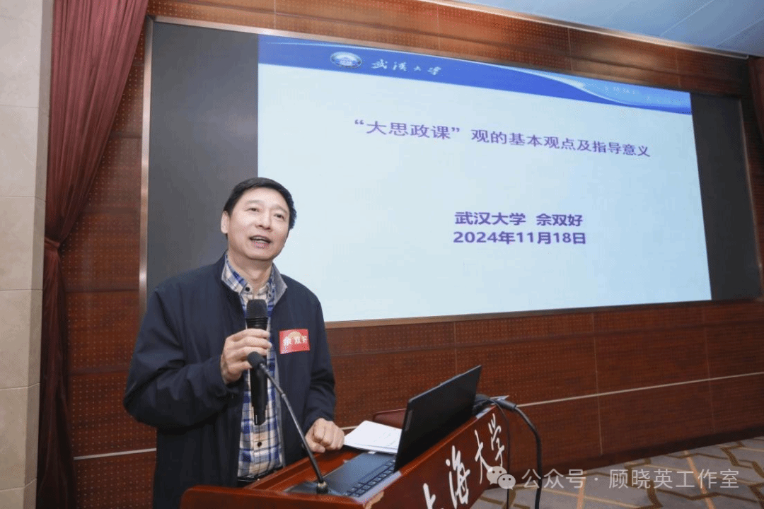 特邀报告由上海大学马克思主义学院党委书记王国建主持。武汉大学马克思主义学院教授,教育部高等学校思想政治理论课教学指导委员会委员佘双好教授带来“大思政课的基本观点及其指导意义“的特邀报告。佘老师主要围绕“关于大思政课重要论述的发展过程”“关于大思政课的基本观点”“以大思政课观推进思政课内涵式发展”三大部分展开。