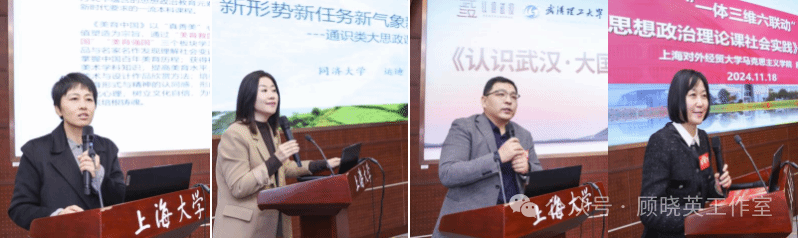 下午场上半段,由“品牌课程有特色”“国一流课程展风采”等板块组成。上海高校思政课教指委思政选修课分教指委委员、上海出版印刷高等专科学校马克思主义学院院长马前锋教授担任主持。上海大学秦瑞丽分享了“美育中国”课程建设做法,同济大学运迪则介绍了“改革开放与新时代-乡村振兴的上海图景认知”课程创新,武汉理工大学刘国龙交流了“认识武汉:大国工业”课程做法。上海对外经贸大学庾向芳介绍了“思想政治理论课社会实践”课程设计。上海交通大学马克思主义学院教授、教学名师李梁老师作了点评。