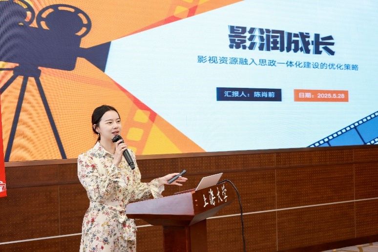 上海大学附属嘉定留云中学校长陈肖前展示了“影润成长”大中小学思政一体化品牌项目,并介绍了基于上海大学“光影中国”课程为依托,创新性探索大中小学不同学段“影视资源+AI技术”赋能思政课的实践路径。