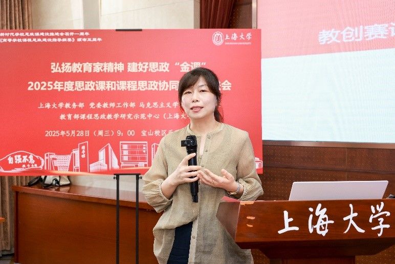 为深入学习贯彻党的二十大和党的二十届二中、三中全会精神,全面落实全国教育大会精神和《教育强国建设规划纲要(2024-2035年)》,贯彻落实上海市教育大会精神,加快推进新时代立德树人工程,弘扬教育家精神,建好思政“金课”,深化大中小学思政教育一体化建设,总结和展示我校思政课和课程思政协同育人成果,2025年5月28日上午,2025年度上海大学思政课和课程思政协同育人推进会在上海大学宝山校区召开。会议由上海大学教务部、党委教师工作部、马克思主义学院、基础教育处、教育部课程思政教学研究示范中心(上海大学)联合主办。来自上海大学课程思政实践基地——宝山区消防救援支队官兵代表,南京工业大学、同济大学、华东师范大学、上海大学附属嘉定留云中学等十余所学校的骨干教师参会。部分学院党委书记、教学院长、学院课程思政分中心负责人、课程思政联络员、课程思政教学名师、名师工作室主持人、近年来立项建设的课程思政项目负责人及团队、师生代表等80余人参会。校党委常委、统战部部长、教师工作部部长曹为民与会。教务部副部长、课程思政教学研究中心负责人顾晓英主持会议。