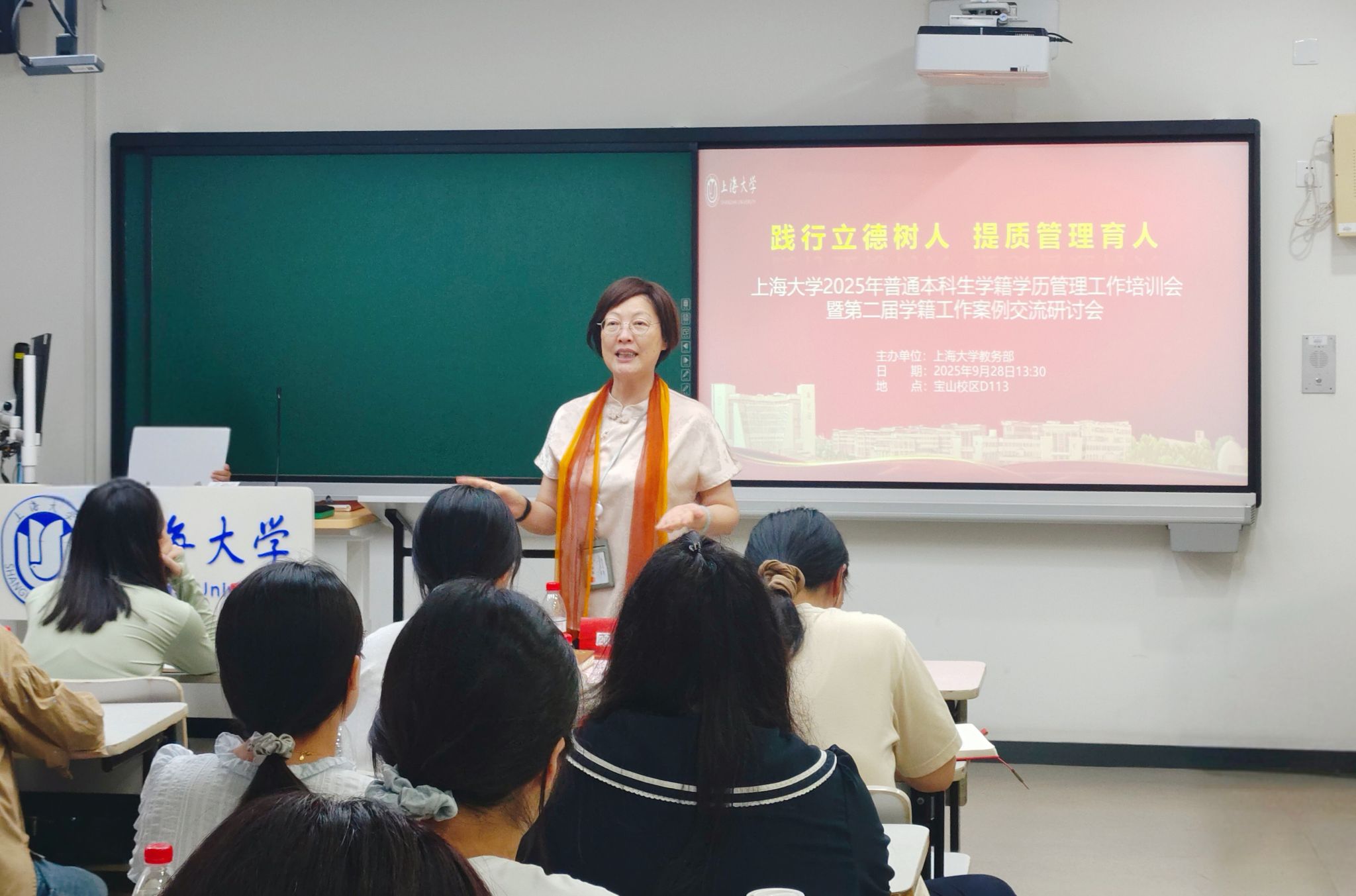 为进一步提高我校学籍学历管理的工作效能,进一步发挥学籍学历管理的育人功能,提升服务意识和育人理念,2025年9月28日,教务部举办2025年普通本科生学籍学历管理工作培训会暨第二届学籍工作案例交流研讨会。教务部副部长、教育部课程思政教学研究示范中心(上海大学)负责人顾晓英,教务部运行处处长袁晓君,及学生工作办公室、校档案馆、校医院、各学院辅导员、教学秘书代表等40余人参加会议。