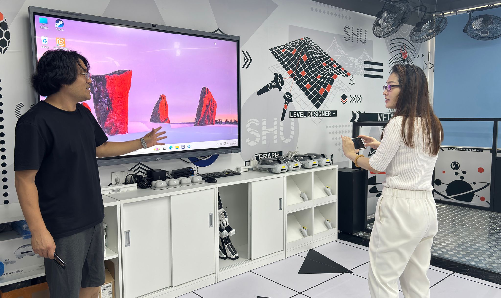 聚焦前沿科技,配备高性能仿真工作站与XR设备,涵盖虚拟仿真综合管理系统、XR内容研创实践系统、沉浸式教学授课系统。