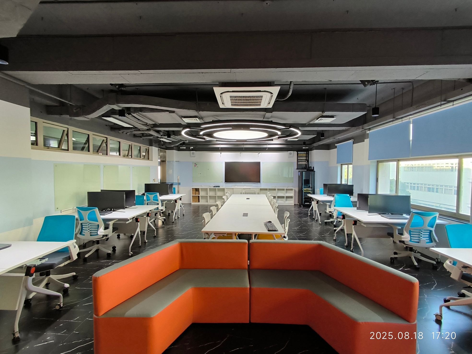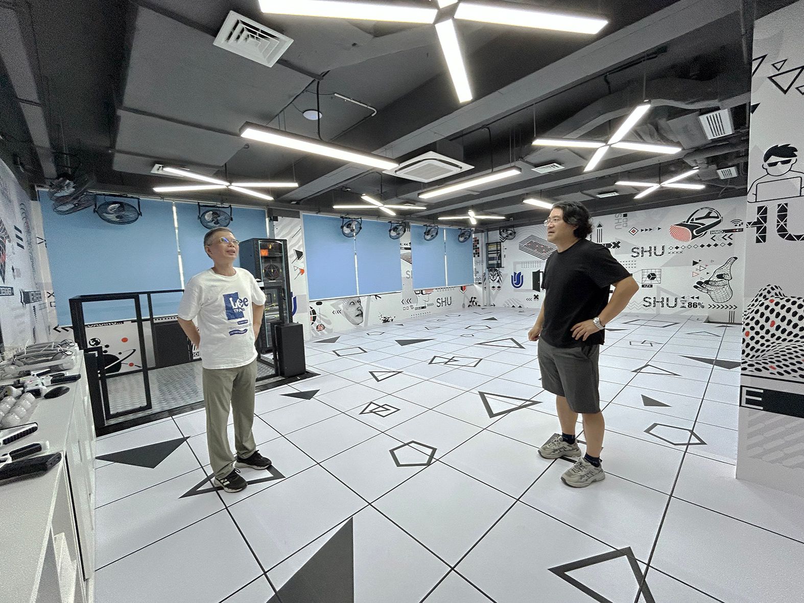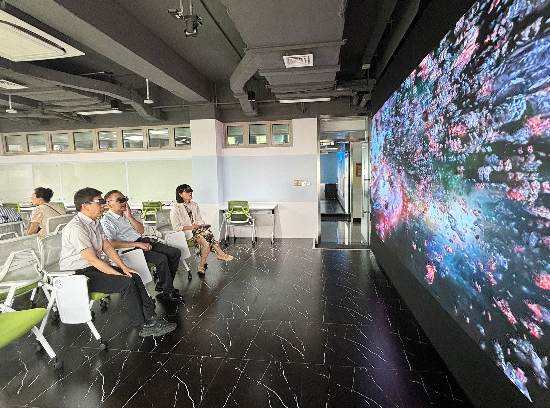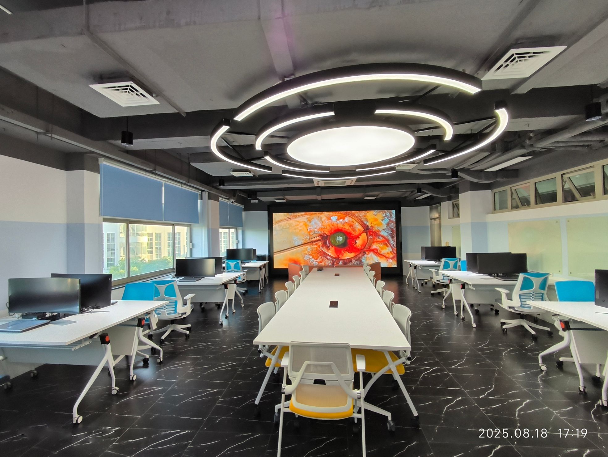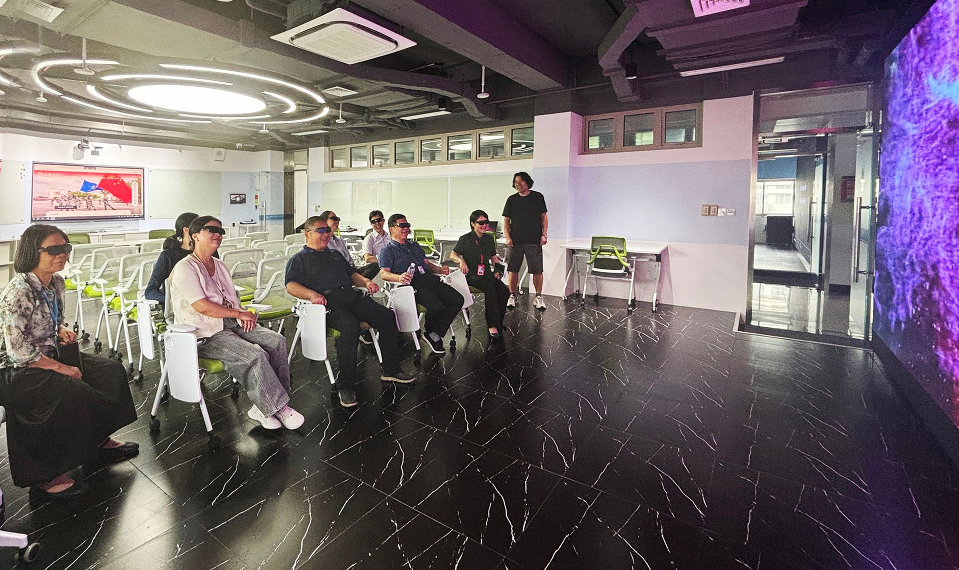 配备虚拟仿真新技术双创培养系统,致力于学科交叉,打造灵活可重构的实验空间,通过沉浸式大屏交互设备,支持多学科团队在此进行协同项目攻关与创新实践。