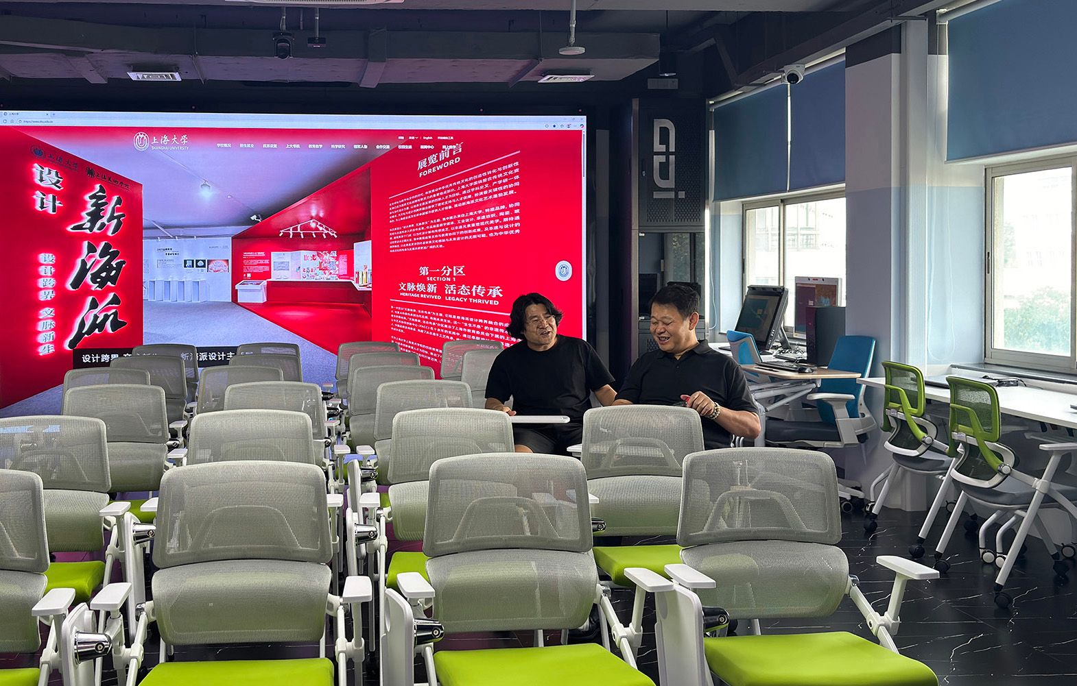 · 8月28日,上海大学美术学院国家级实验教学示范中心主任罗小戍,协同苏州科技大学玻璃艺术实验室主任孙志浩,莅临虚拟仿真实验中心指导工作。