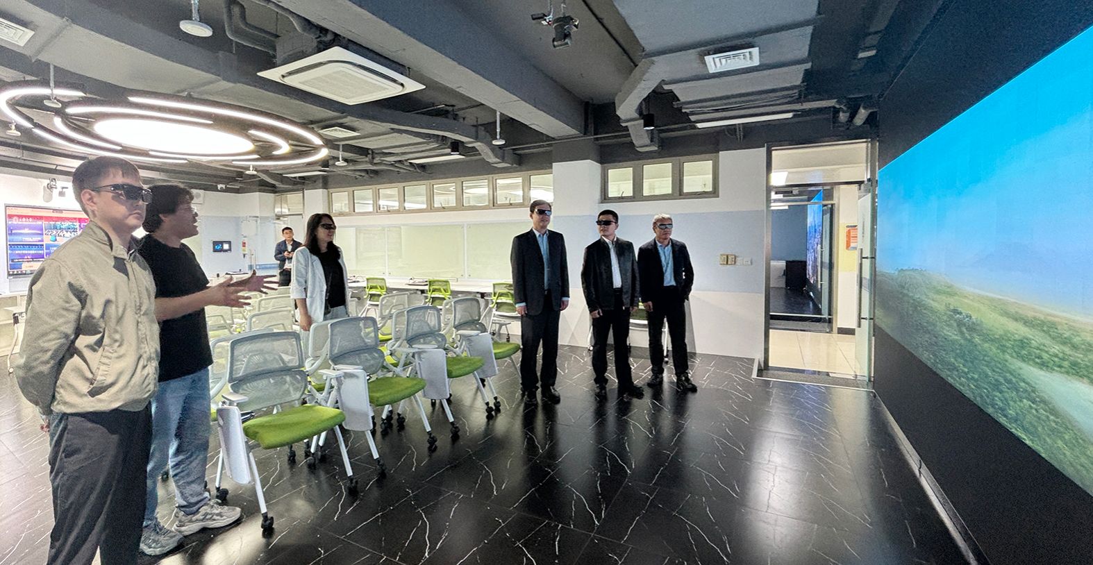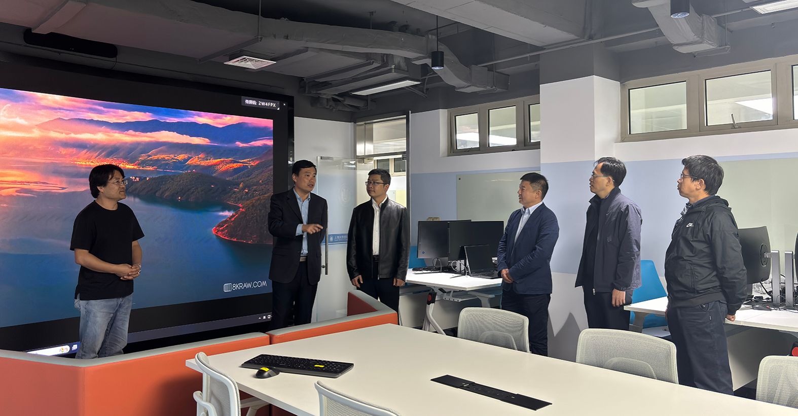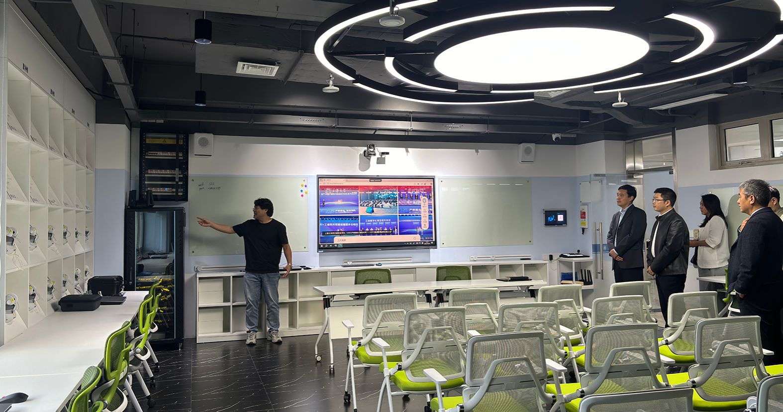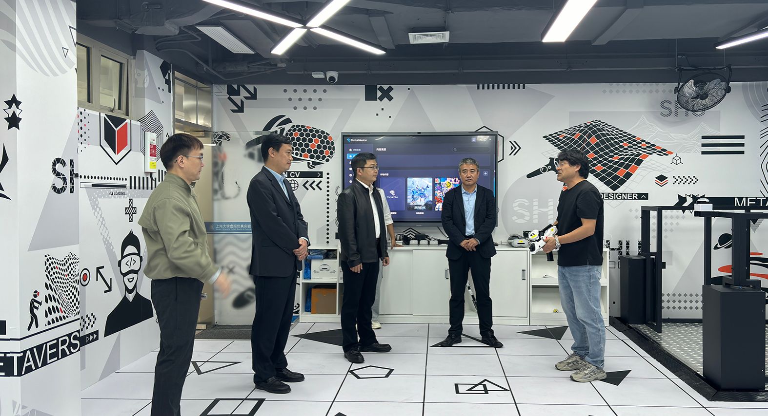 在C329虚拟仿真XR新技术双创实验室,来宾对其在营造创新研发环境、配置先进设备、激励师生探索前沿技术等方面取得的成效表示赞赏。
