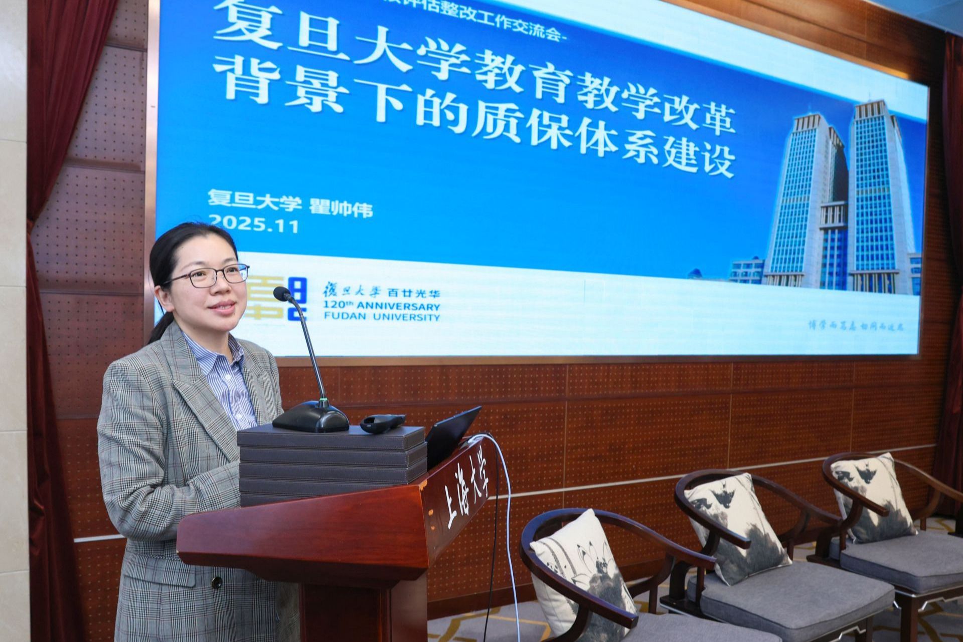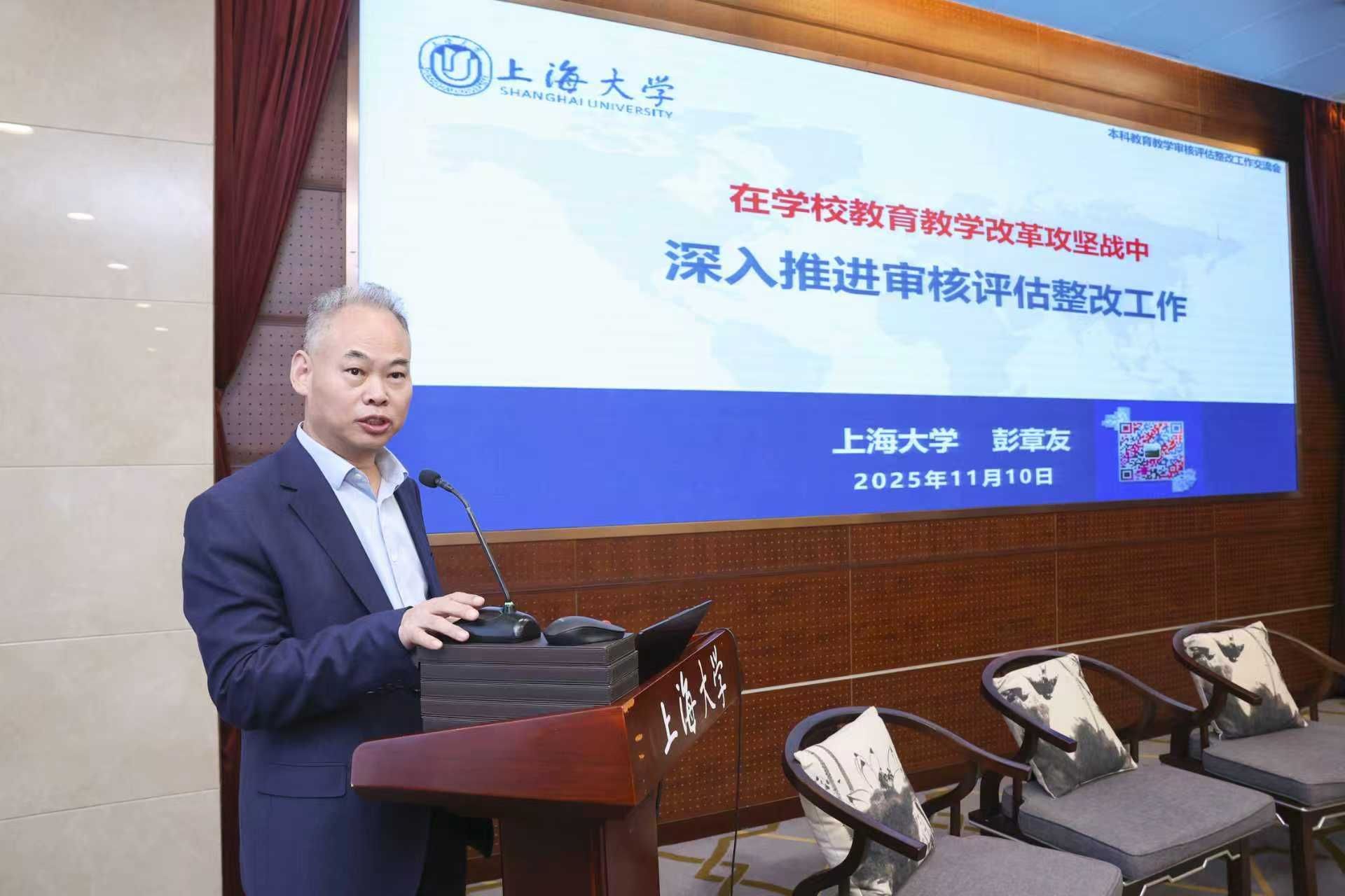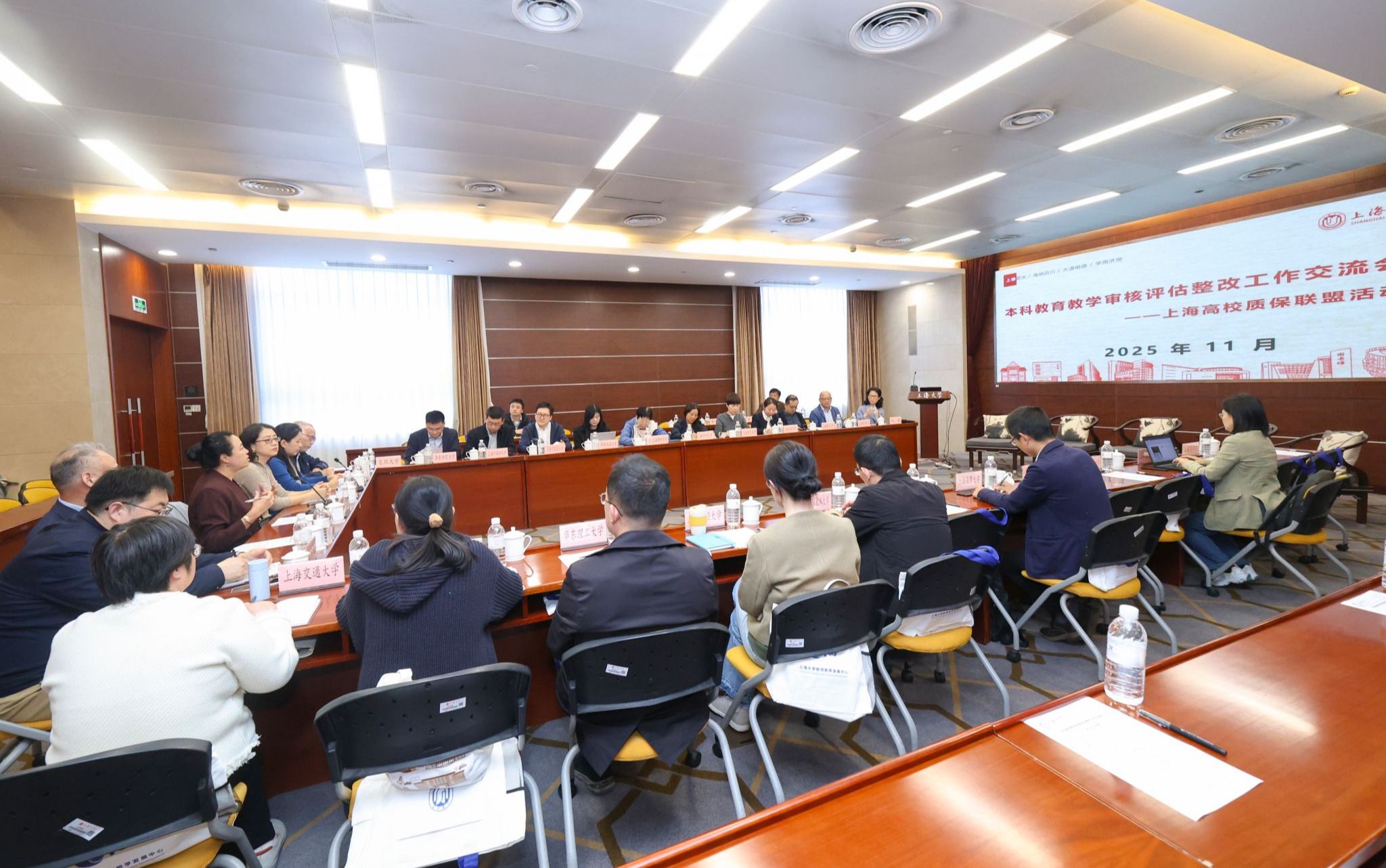 2025年11月10日上海高校本科教育教学审核评估整改工作暨上海高校质保联盟工作交流会在上海大学乐乎楼思源厅召开。上海市教委督导室副主任赵丽霞、上海大学副校长于雪梅、上海高校质保联盟轮值主席单位、上海高校质保联盟各会员单位、学校质管部门相关负责同志以及督导室相关人员出席本次会议。会议由上海高校质保联盟副秘书长、同济大学质管办副主任相波和上海大学教务部副部长辛明军共同主持。