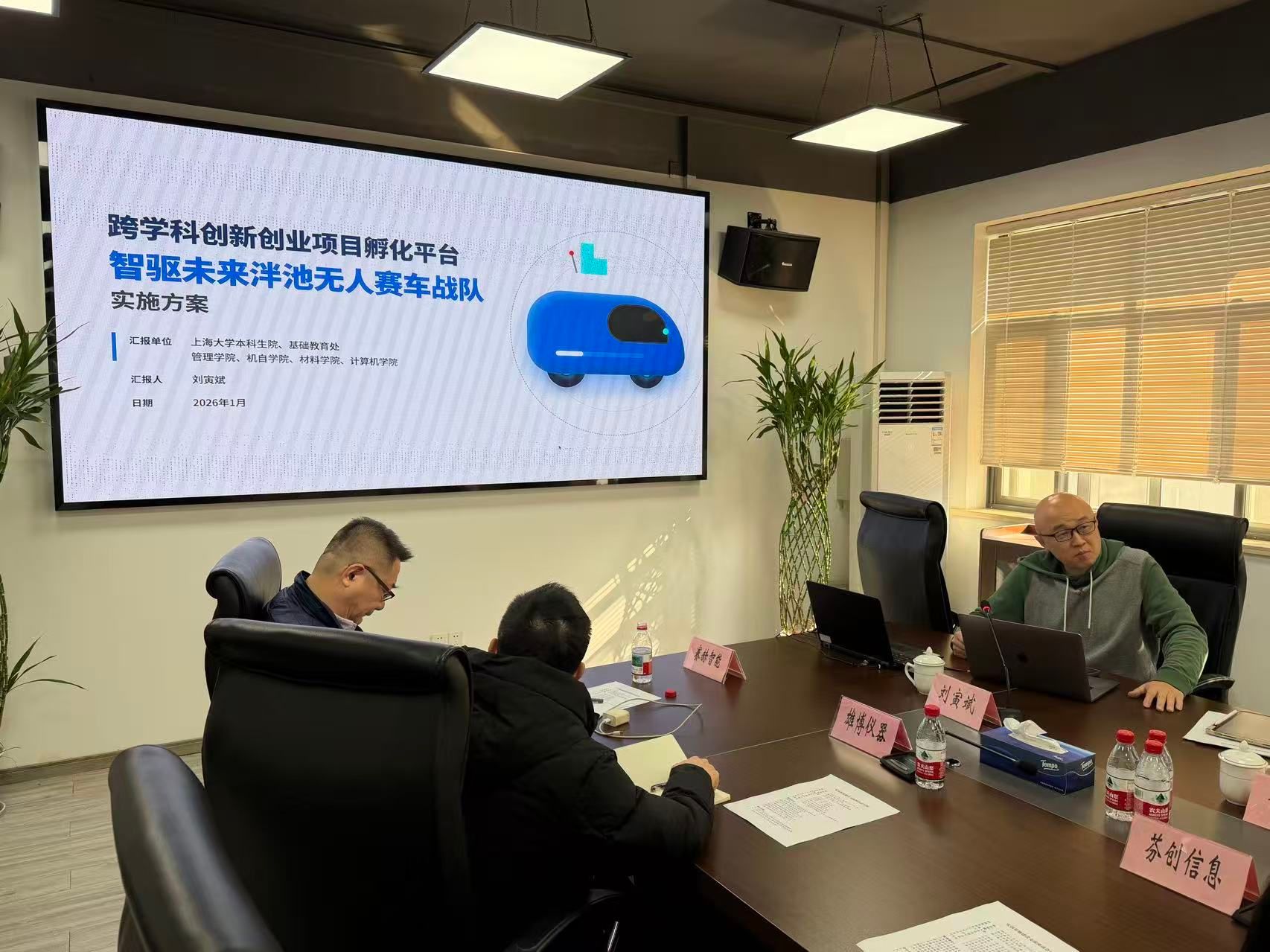 本次调研会上,面对当前企业对复合型、创新型人才的强烈需求,上海大学管理学院教授、《创业人生》课程负责人刘寅斌以“智驱未来-泮池无人赛车战队”为题介绍了跨学科科创平台的实施方案。