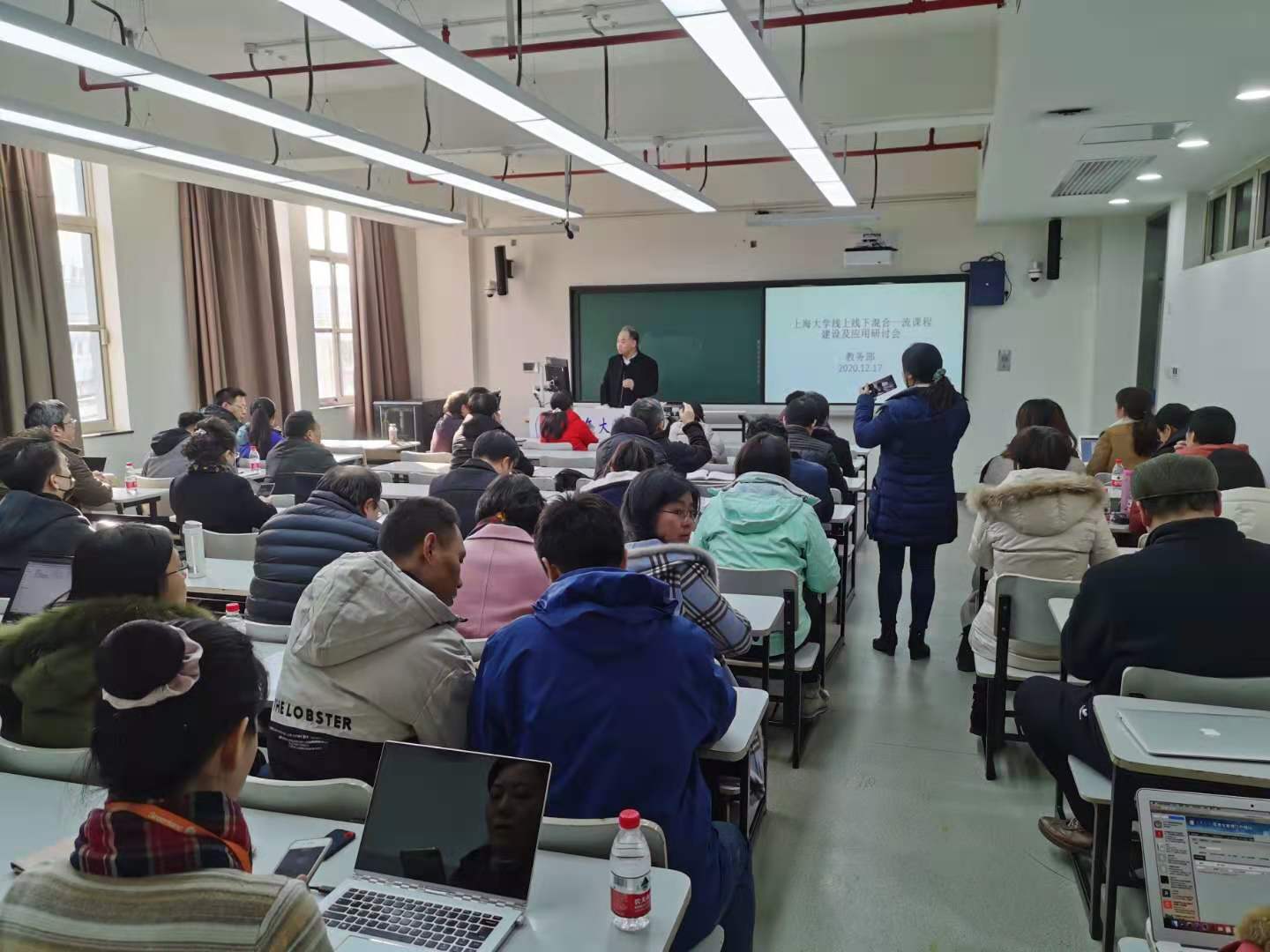 2020年12月17日星期四下午,上海大学教务部组织了“线上线下混合一流课程建设及应用研讨会”。会议邀请同济大学本科生院副院长吴志军教授和华东理工大学教务处副处长、混合式金课《数字信号处理》课程负责人万永菁副教授为我校教师做了精彩的会议报告。