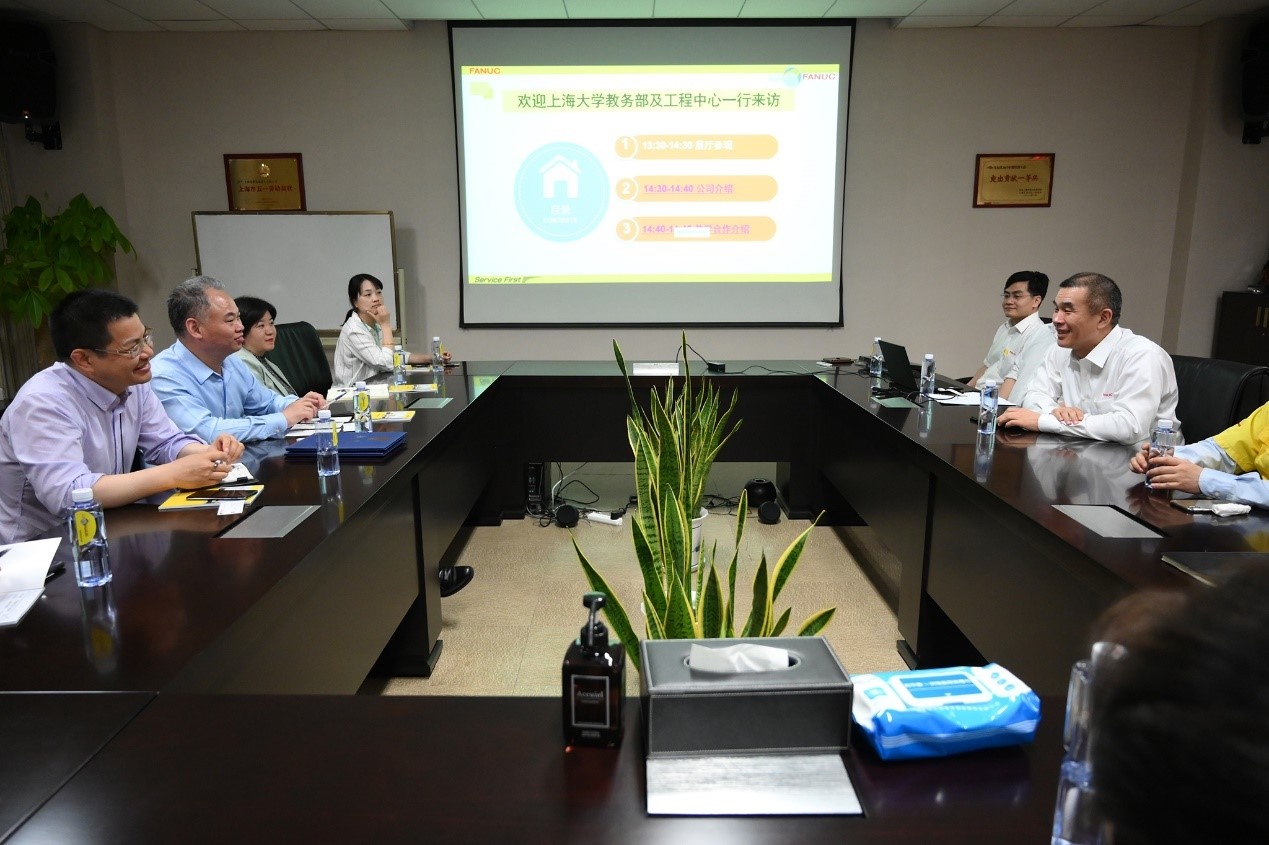 为了进一步推进大工程训练中心的建设,5月13日,上海大学教务部一行在常务副部长彭章友、工程训练中心主任郭帅带领下到上海发那科机器人有限公司参观考察。上海发那科机器人有限公司总经理钱晖对我校到访的领导表示热烈欢迎。