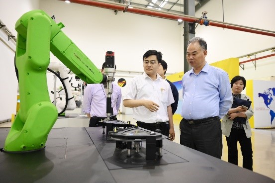 彭章友一行参观了上海发那科机器人有限公司智能制造展厅、发那科技术学院实训基地。