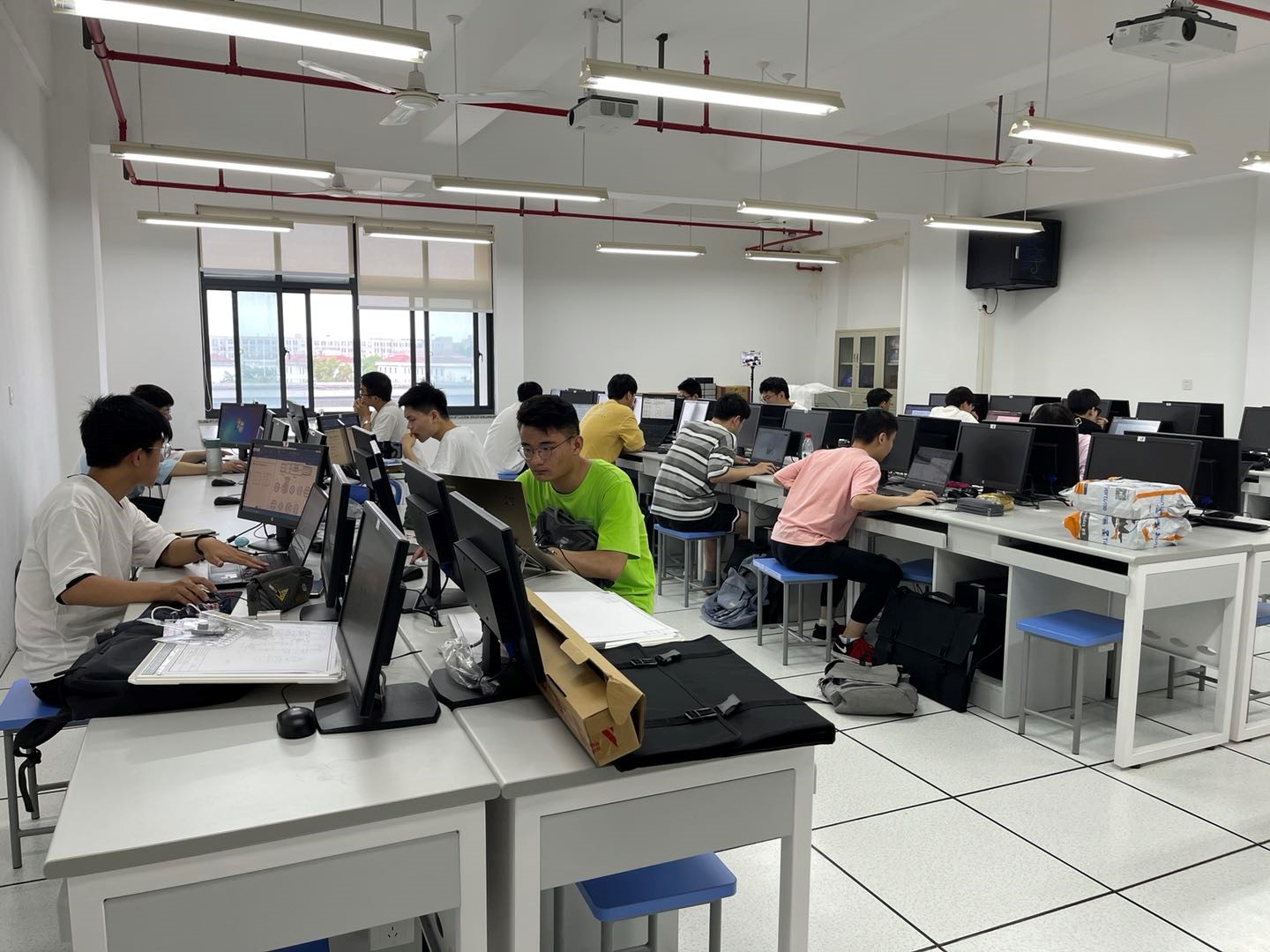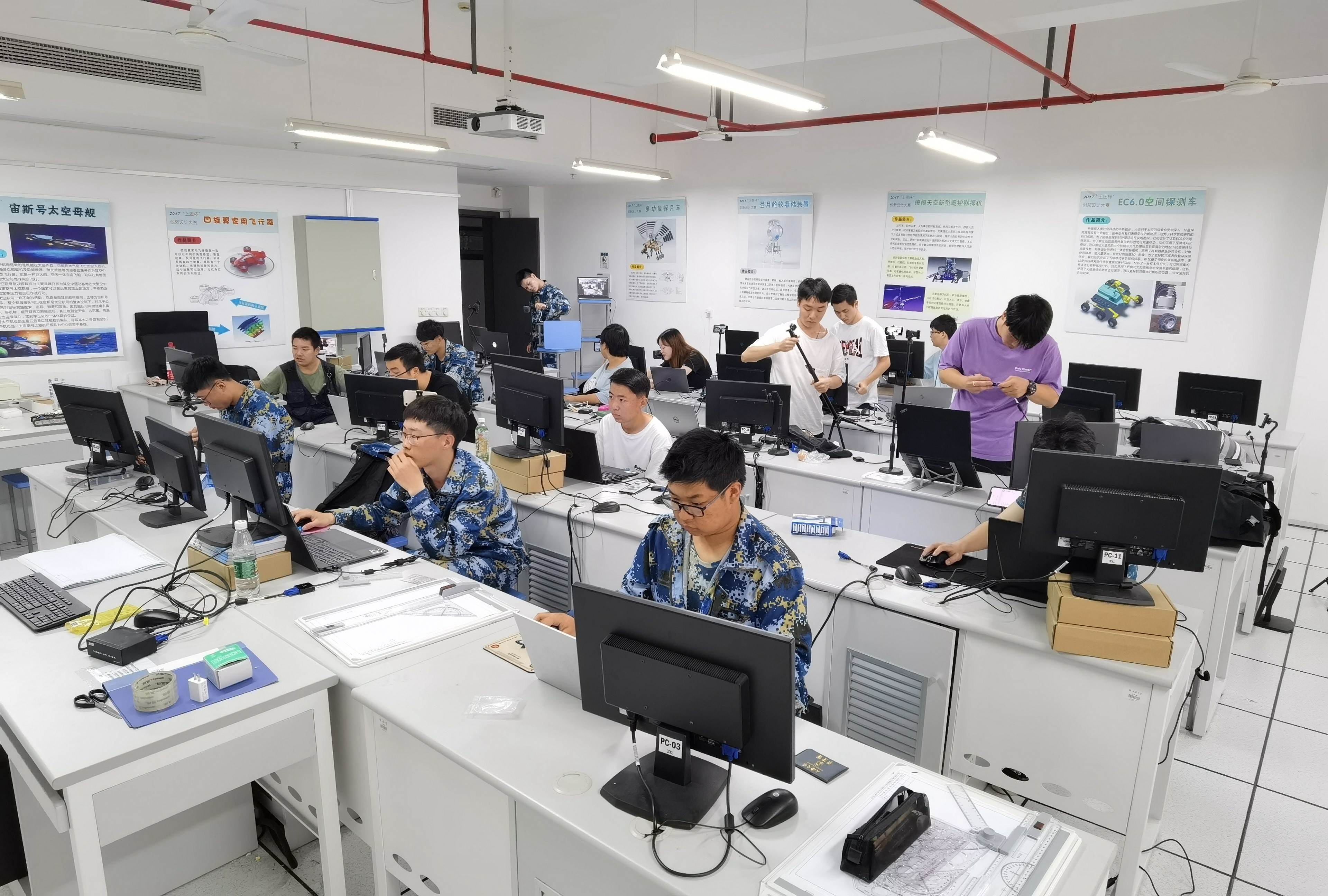 图为 夏季学期课程和军训之余参赛学生在机房中争分夺秒进行集训