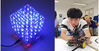 本年度中心从实训形式和实训项目上做了重大改革。首先,中心结合新购置的先进装备对传统金工实习的实训项目进行了调整,如去除了普通测量项目,增设了逆向建模和扫描项目、三坐标测量项目等先进技术实训;其次,针对5天短期金工实习课程做了项目引导式实习改革和尝试,利用多功能工具作为载体,串联多个实训项目,让学生了解制造工艺,体验产品制作全过程;尤其针对传统的电子实习课程,彭章友部长指明了改革方向并提供了改革思路,最终利用光立方、机械臂和智能寻迹避障小车等实践项目替代了20余年的收音机装配项目,构建了全新的课程内容。课堂气氛活跃,学生参与度高、兴趣高涨、反映良好,通过在线问卷调查,学生的感兴趣程度和满意度均达到85%以上,同时对学生的反馈意见进行了梳理和总结,将用于进一步的课程改革。