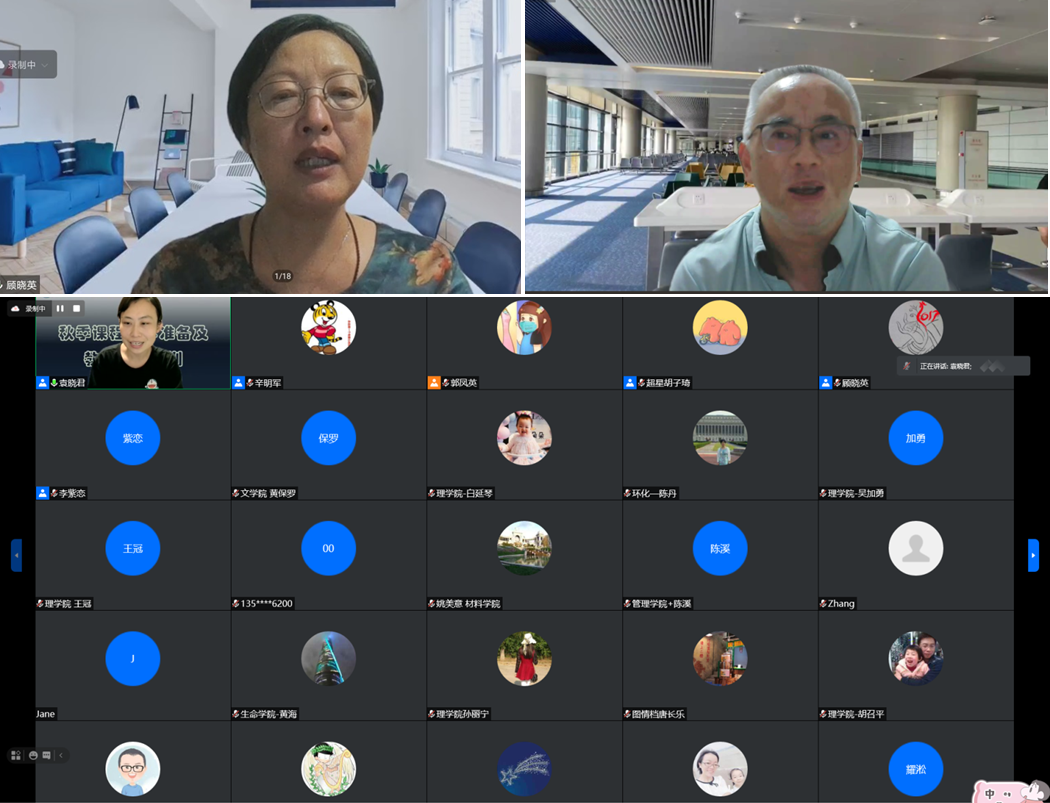 首先,徐学良老师向大家介绍了上海大学秋季课程教学的准备情况。他强调,因为疫情原因,部分学生特别是留学生还不能回到学校,为了保证教学的正常进行,请老师们在超星平台上尽快激活课程,共享教学资源,让未能来到课堂的学生也能够通过超星同步课堂或腾讯直播等方式进行课程学习。紧接着,顾晓英老师对秋季教学的准备情况进行了补充,特别提醒老师们注意新学期排课时间的调整变化。她还就学校下半年的课程思政工作进行了部署,希望老师们提早谋划准备,通过课堂阵地引导学生的价值观念和行为选择,为党育人为国育才。