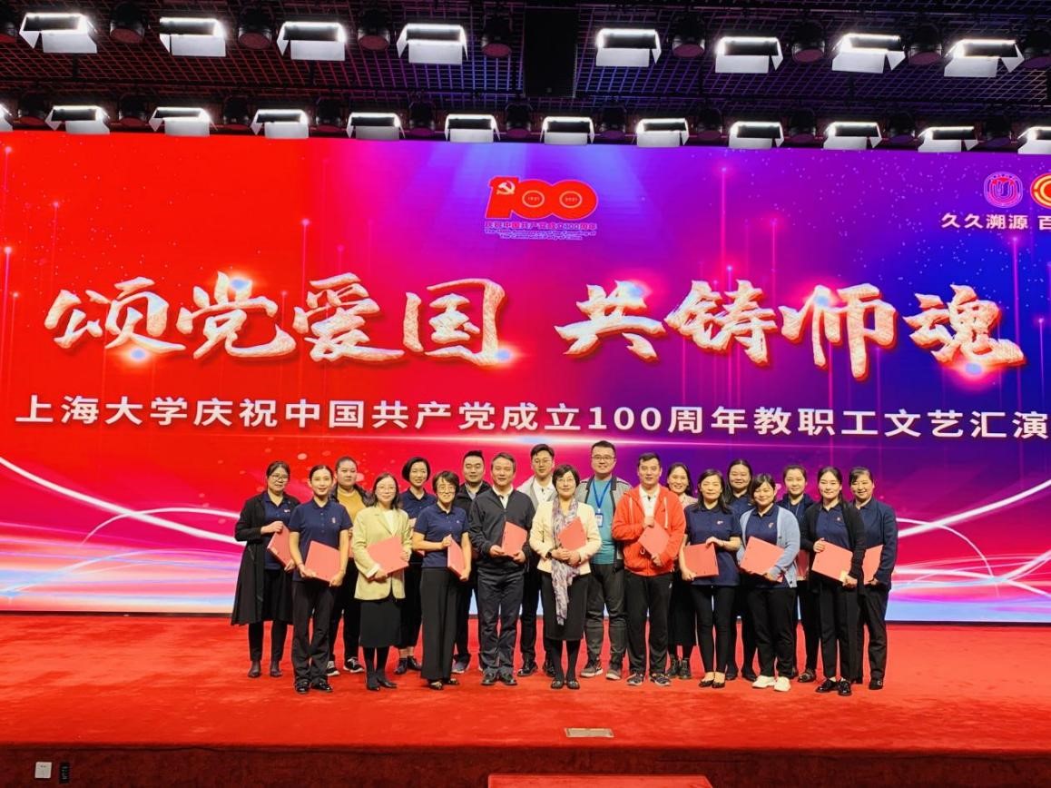 2021年10月19日下午,上海大学以“颂党爱国 共铸师魂”为主题,举办上海大学庆祝中国共产党成立100周年暨教职工文艺汇演。教务部派出代表队积极参加,以集体朗诵革命先烈家书的形式,借声音重温岁月,讲党史颂党恩。