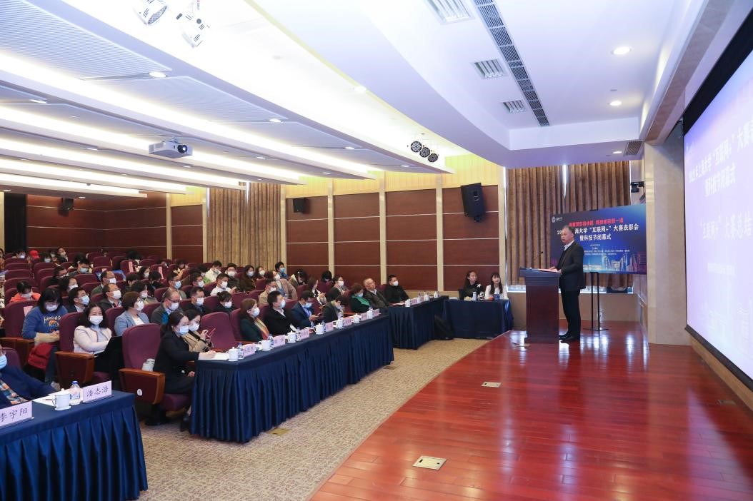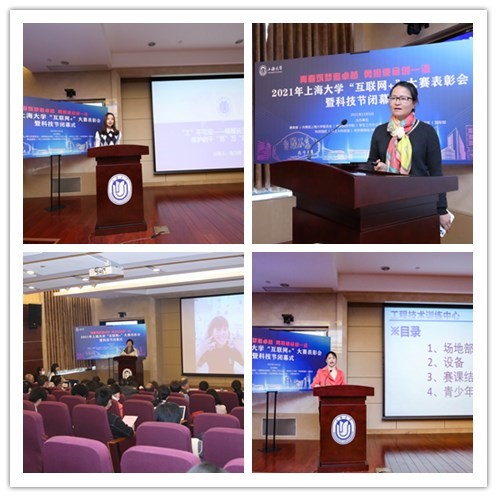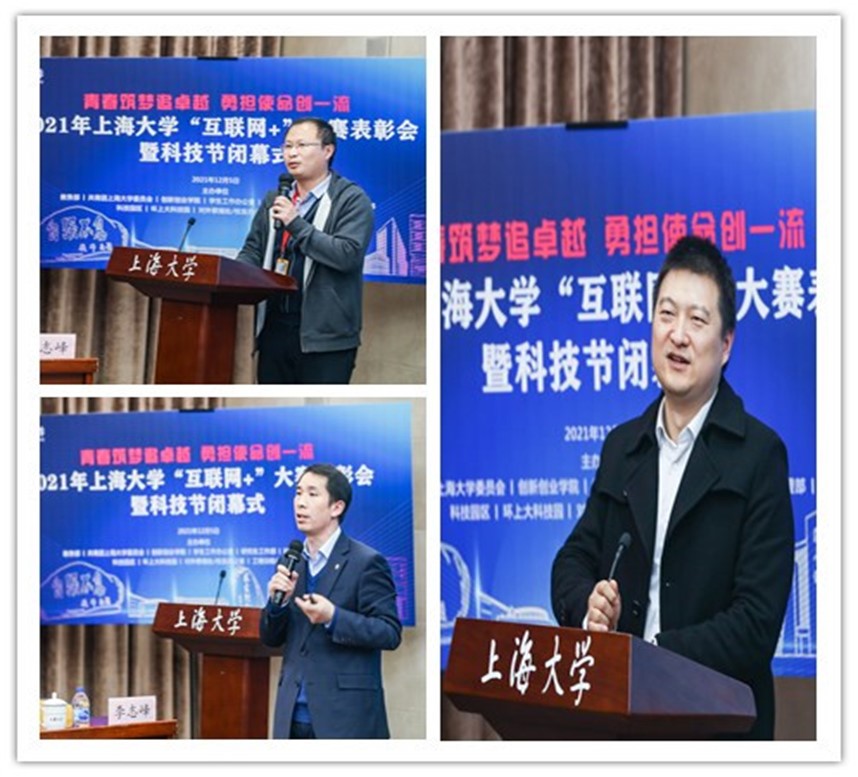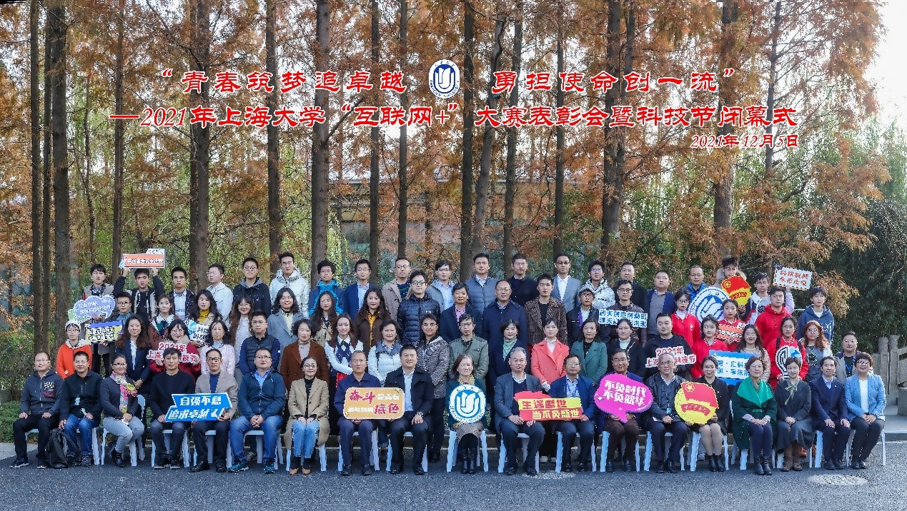 2021年上海大学“互联网+”大赛表彰会暨科技节闭幕式于12月5日在宝山校区乐乎楼举行。会议分为表彰会暨闭幕式和研讨会两个环节。校党委常委、副校长聂清,同济大学创新创业学院副院长殷俊锋,教务部常务副部长彭章友,共青团上海大学委员会书记冯凌燕,学生工作办公室主任、武装部部长孟祥栋,研究生工作部部长魏宏,国际部副部长、国际教育学院院长李颖洁,科技园区总经理潘志浩,环上大科技园总经理李宇阳,对外联络处办公室主任黄浩,教务部副部长辛明军、顾晓英、杜晓庆,工程训练中心主任郭帅,现代教育技术中心主任陈章进,各学院教学院长、系主任、学科负责人、学工书记、团委书记、获奖师生代表等参加了大会。