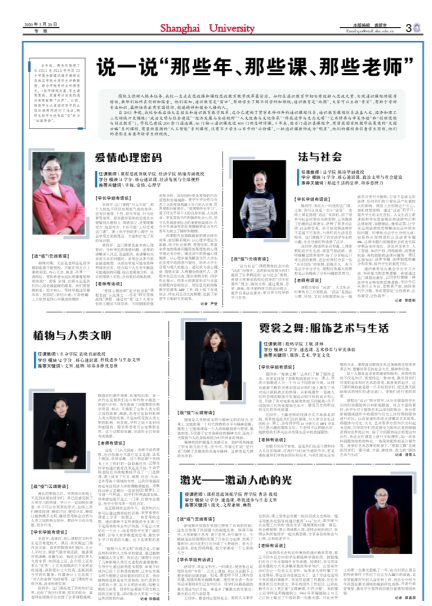 通识教育已近10年。这是上海大学快速发展近10年,也是老师们锻炼成长的近10年。我有幸全程参与其中,在教与学中投入激情,历练生命,收获经验,成熟人格……这是身为教师最荣幸的历经。