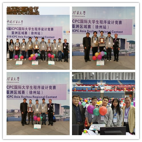 第44届ICPC亚洲区徐州站比赛于2019年11月2-3日在中国矿业大学(徐州)举行,来自北京大学、清华大学等180多所高校以及部分受邀中学的301支队伍参加了此次比赛,本次参赛的高校队伍是9月7日由2400多个队经过网络赛选拔而来。我校获得了3支队伍的参赛名额,派出了由计算机学院16级学生蔡盛梁、苗伟华和18级学生周天澜组成的“你以为你CF过了四题”队、17级学生罗哲焱、董昱、林世铨组成的“魔菜队”以及18级陈浚毅、孙逸融、胡亚琪组成的“格物致知”队参加本次比赛,沈俊和沈云付老师担任教练,沈云付教练和计算机学院副院长张博锋亲临现场指挥比赛。