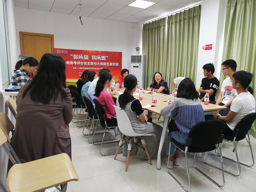 为深入开展“不忘初心 牢记使命”主题调研,充分了解2019级大类学生进校后一月学习感受与教学管理满意度,9月27日下午,教务处考评办党支部和社区学院联合主办 “你所思 我所想”——教务考评党支部与大类新生面对面活动。教务处考评办党支部的党员代表,社区学院党委书记邓志瑞、副书记黄欢、教务办叶蕾老师及社区学院大类新生代表出席面对面活动。教务处考评办党支部书记、教务处副处长顾晓英主持了调研活动。