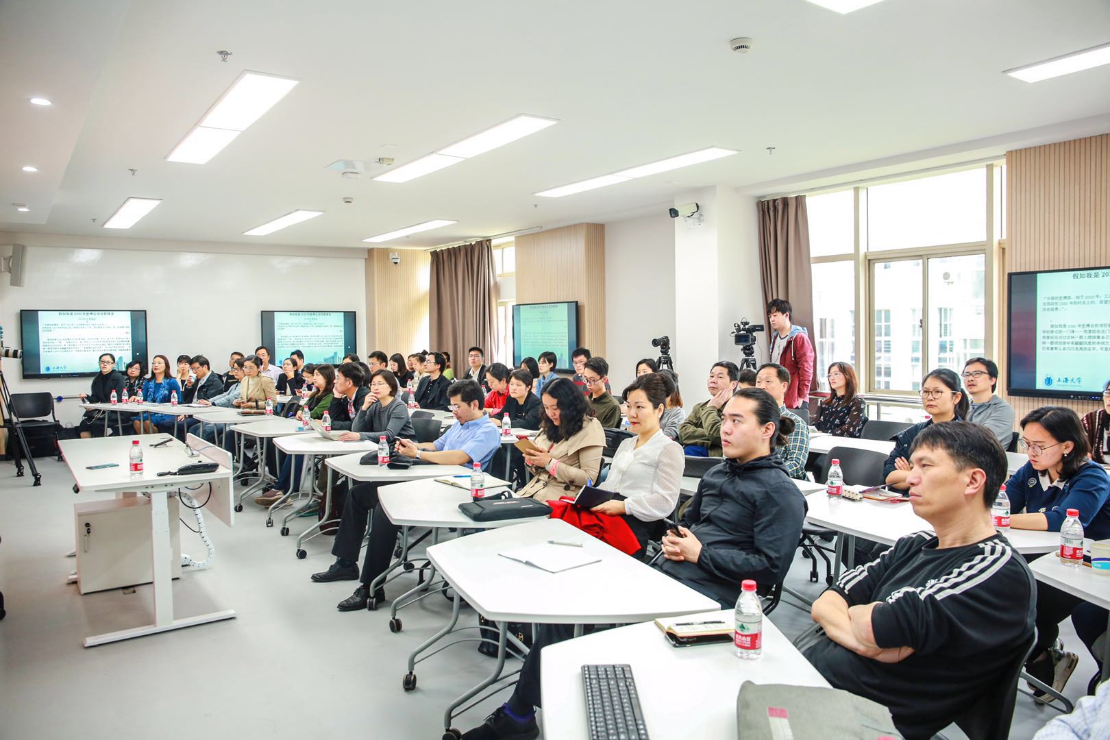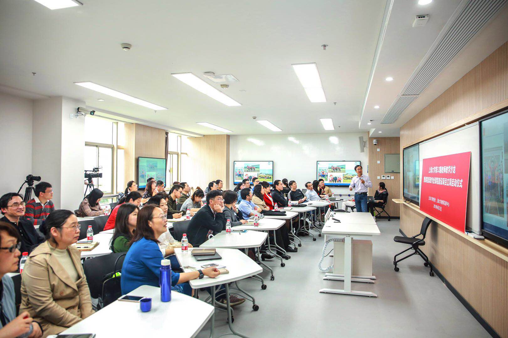 来自各院系已获准2019年度课程思政专业课程建设立项或有志开展课程思政建设的教师,新进青年教师、院系领导和教学秘书等与会。整整三小时,78位老师将智慧教室坐得满满当当。