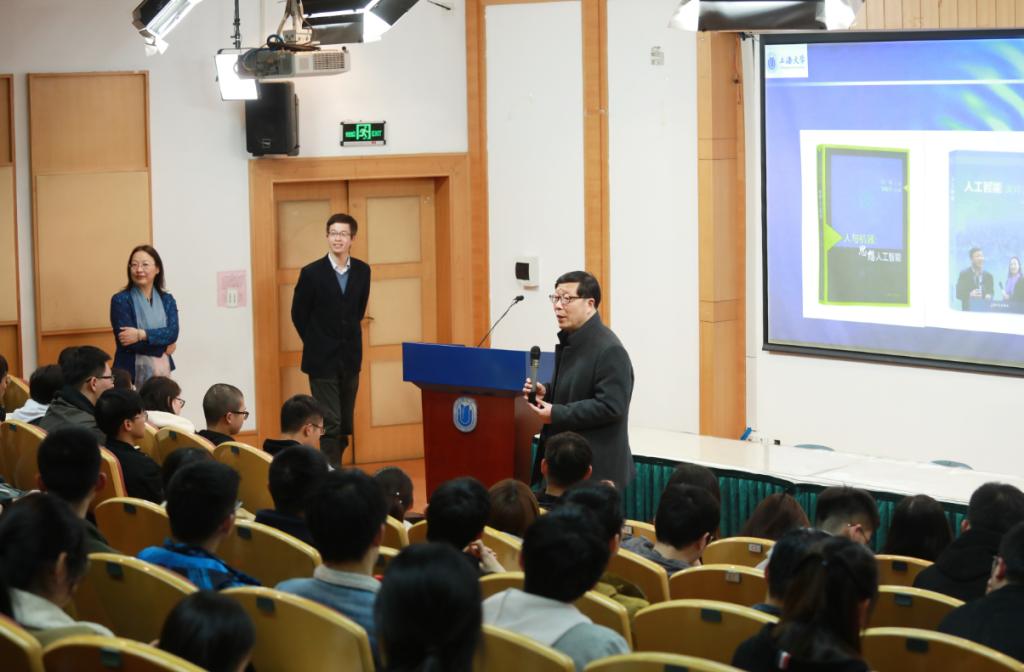 继2018年成功开发育才大工科之“人工智能”、“智能文明”、“人文智能”、“智能法理”课程之后,今年3月25日晚,上海大学育才大工科之“人工智能”系列课程第五门——“生命智能”通选课在J楼201正式开讲。课程隶属生命科学学院,由生命科学学院副院长、国家优青肖俊杰教授担任领衔人。课程出品人依旧是上海市课程思政教学科研示范团队——社会学院顾骏教授和上海市思政课名师工作室——“顾晓英工作室”主持人顾晓英研究员。这也是五年来“双顾组合”联袂推出的第11门通识大课。其中,“大国方略”系列课程已荣获国家级教学成果奖二等奖。