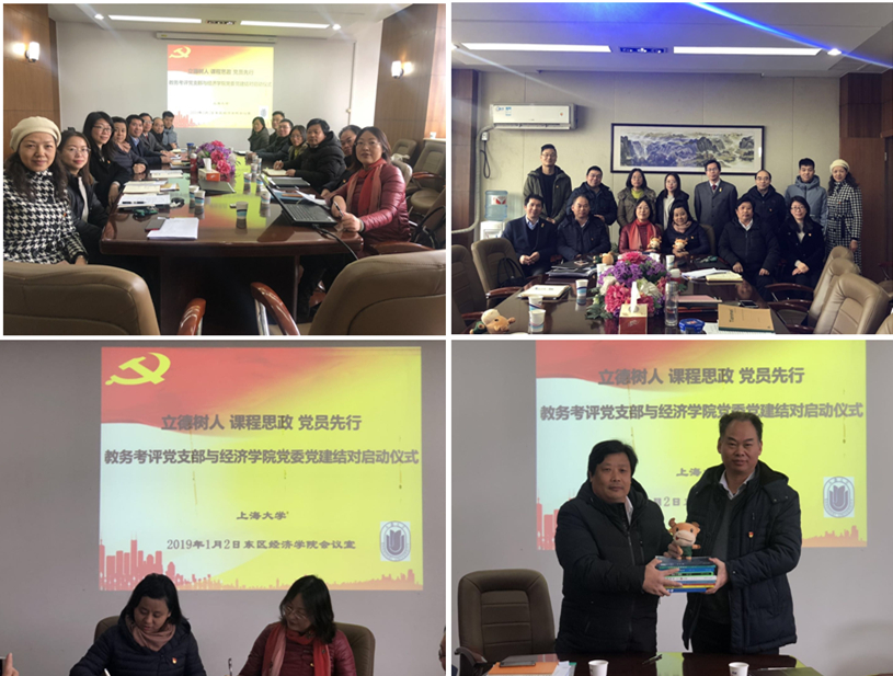2019年1月2日,东区经管大楼会议室,上海大学教务考评党支部与经济学院党委举行了党建共建结对仪式暨第一次集体党课学习活动。出席此次活动的有教务处处长彭章友,经济学院常务副院长聂永有,经济学院党委书记陆甦颖,教务处副处长、党支部书记顾晓英,教务考评支委全体成员与经济学院党委全体成员、学生支部代表。