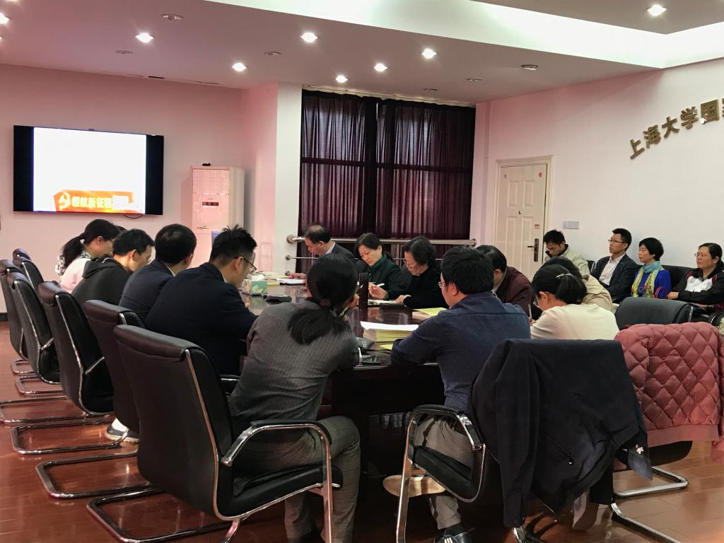 顾晓英书记介绍了2017-2018年度精神文明总结、菊花节周周展展板内容安排,沟通了支部申报上海市党建好项目进展。顾晓英书记再次强调了我们支部要贯彻党的十九大精神,认真学习《习近平新时代中国特色社会主义思想三十讲》,要求各位党员立足本职工作,以习近平新时代中国特色社会主义思想为指导,开展相关的教学管理研究,形成固化成果。